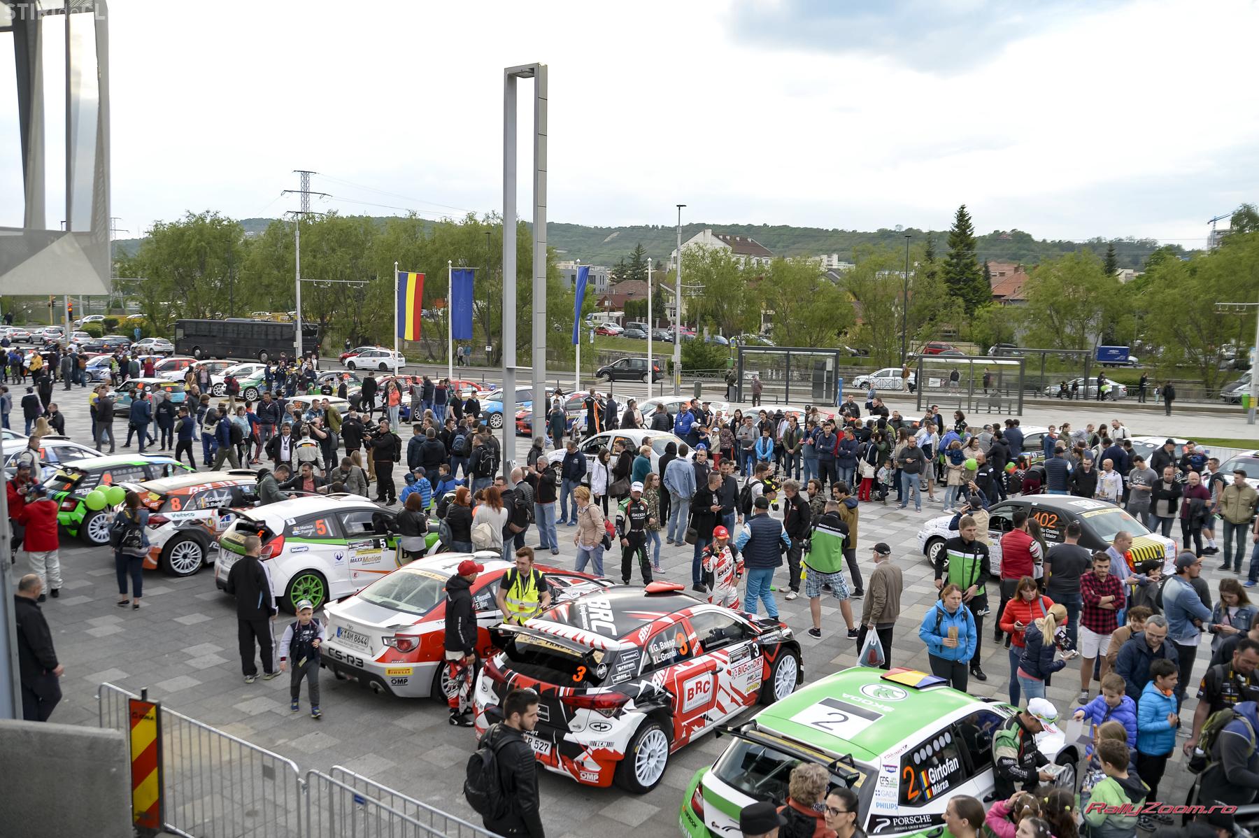 A urmat startul festiv, la care au luat parte sute de clujeni, autorități locale, parteneri ai BT Transilvania Rally powered by Ford, cu o participare record de echipaje: 85. Astăzi, după shakedown-urile de pe circuitul din Florești, urmează primele patru probe speciale ale raliului.