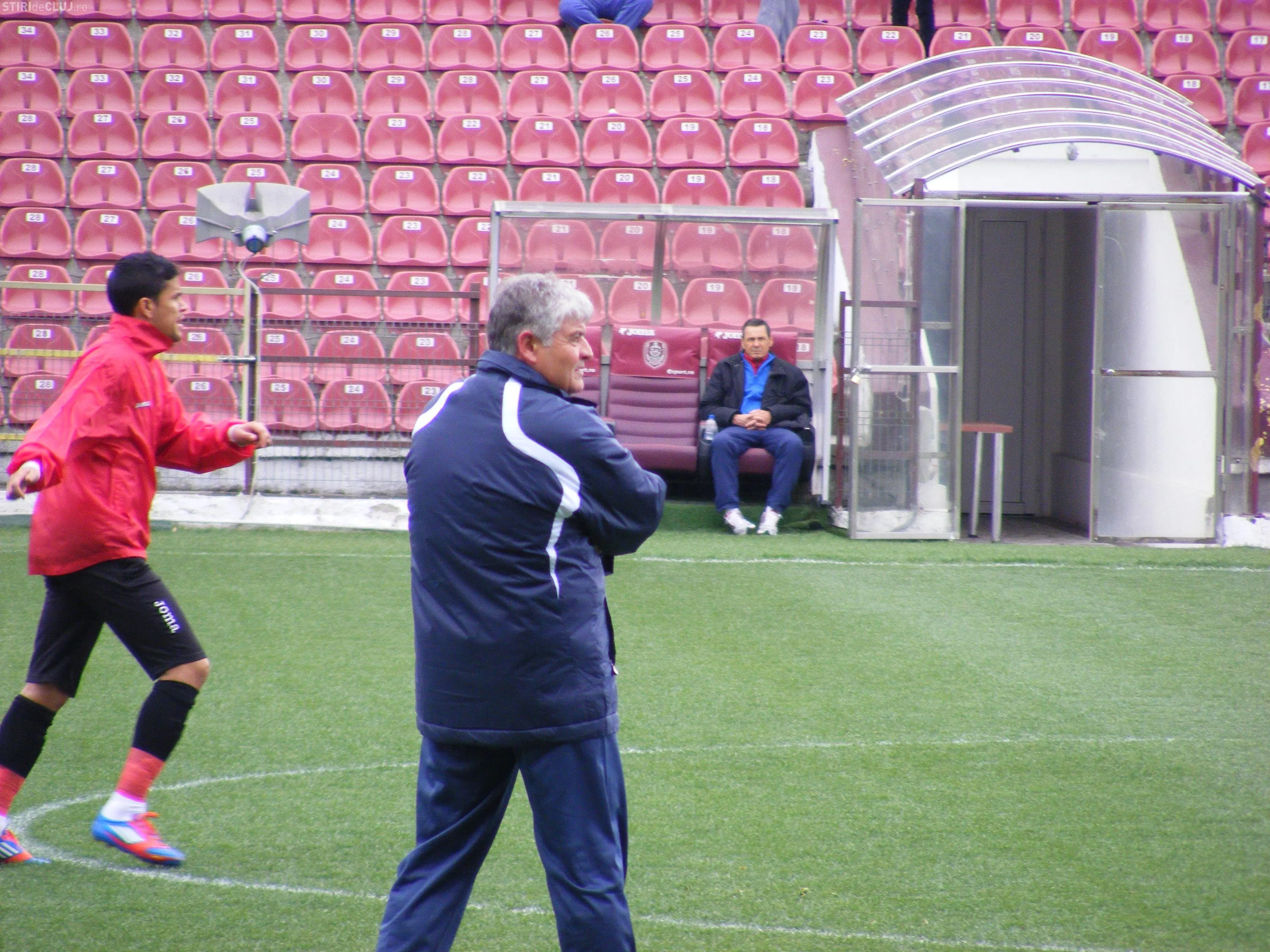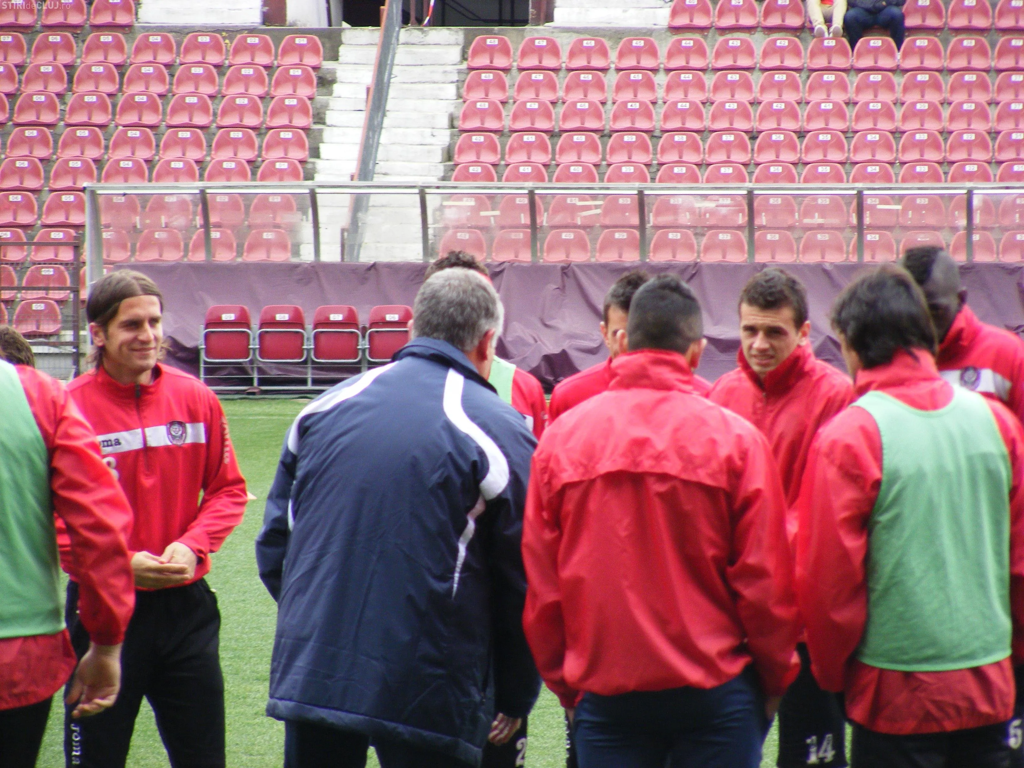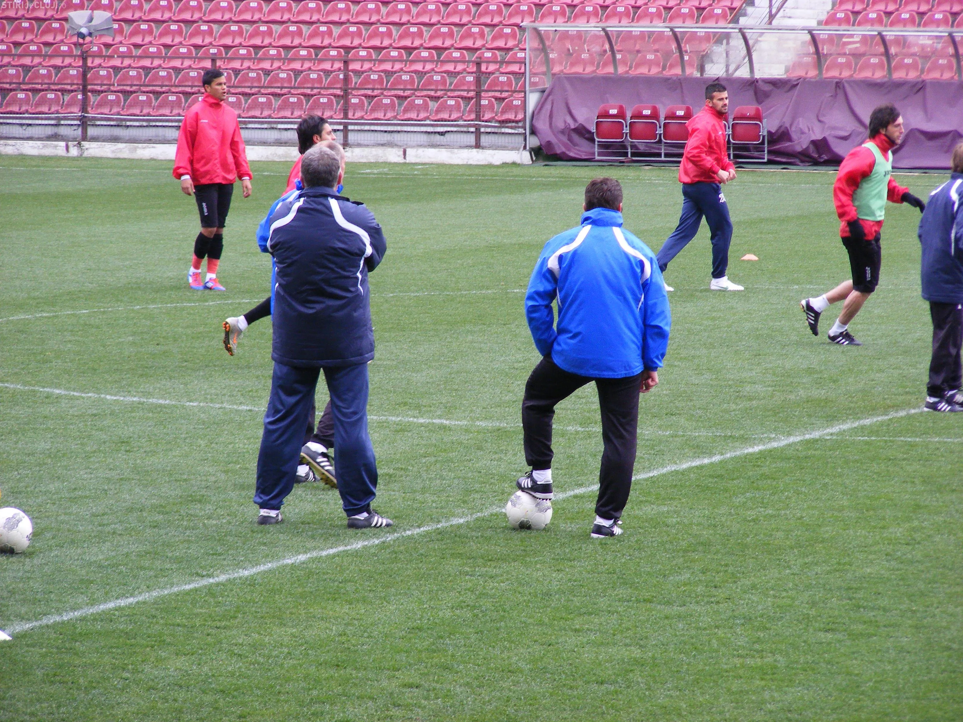 Antrenamentul a fost coordonat de pe margine de Ioan Andone, care i-a urmarit cu atentie pe jucatori.