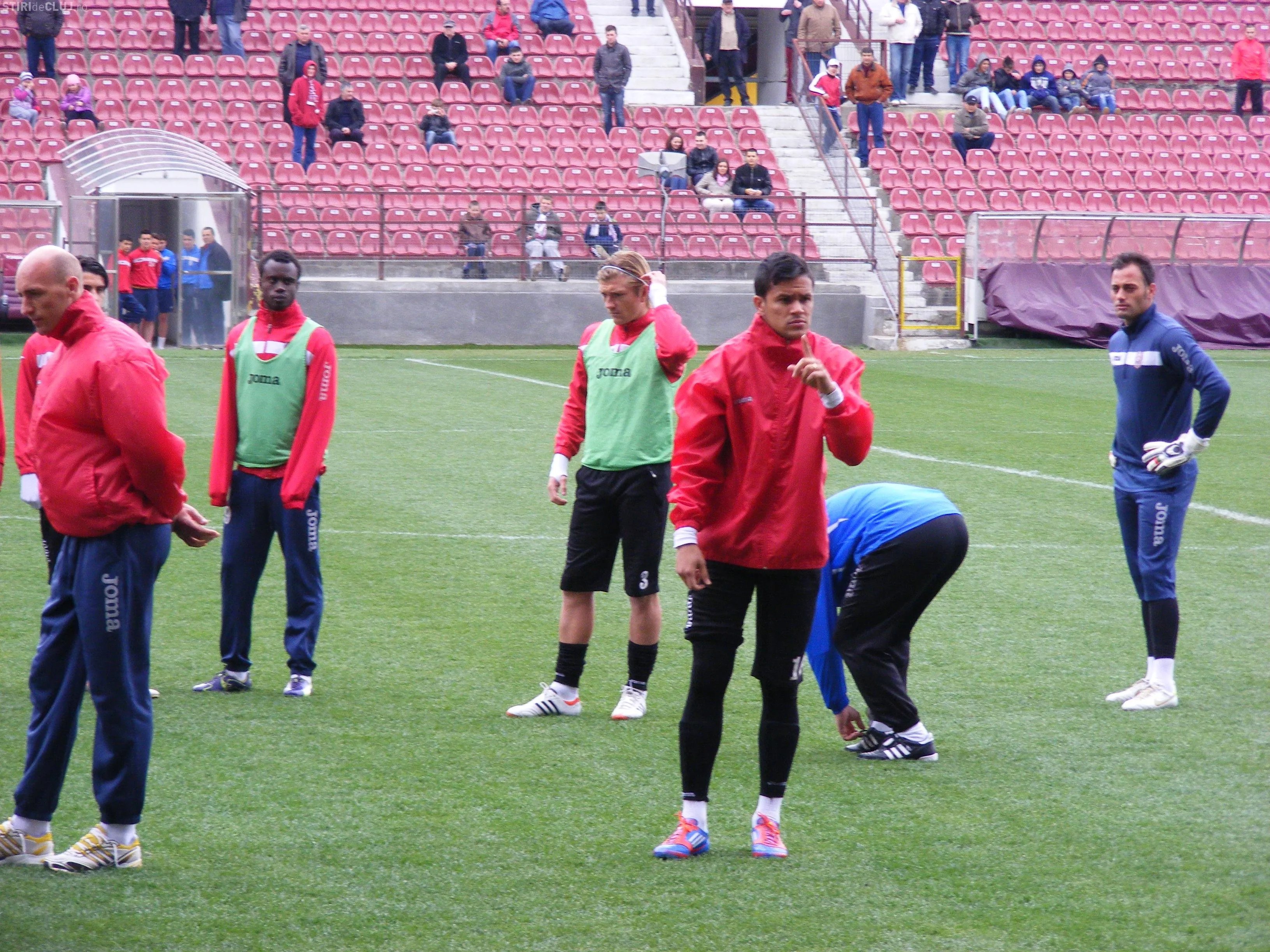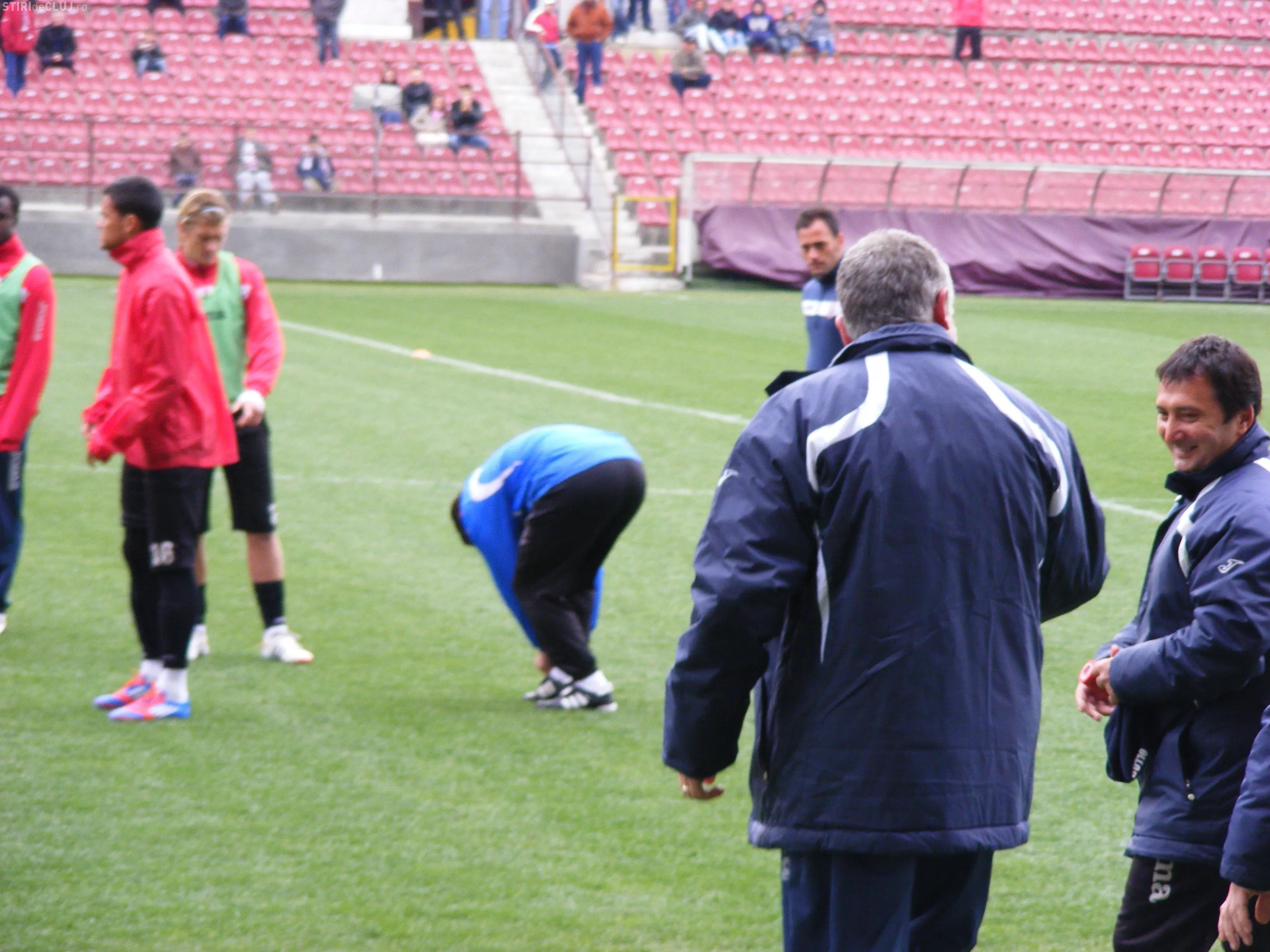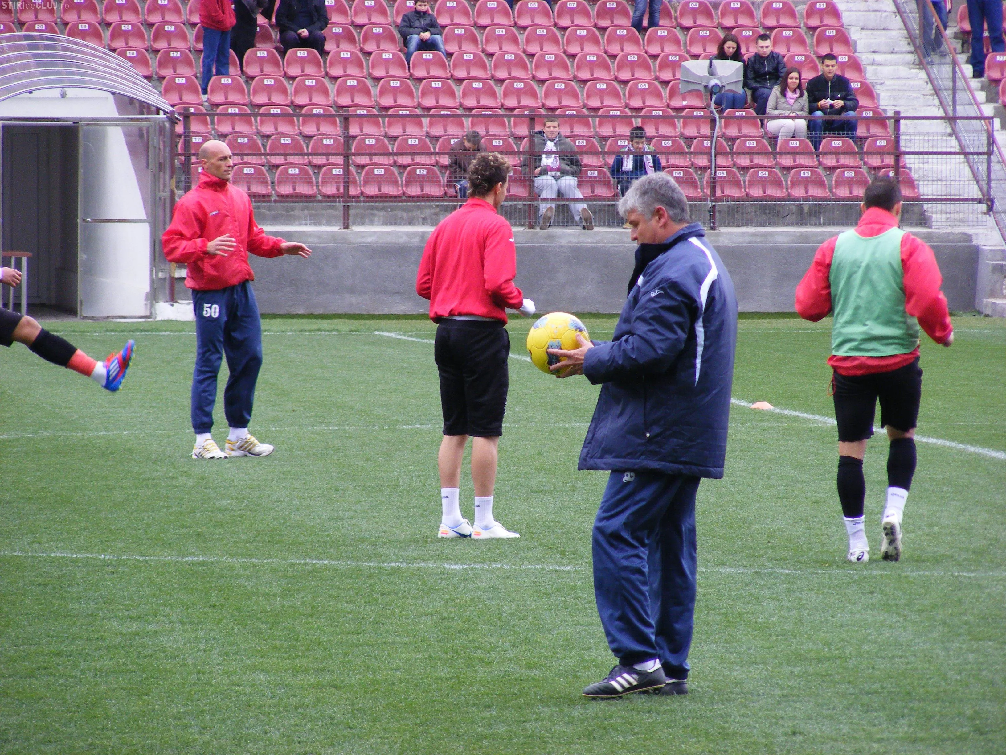 Antrenamentul a fost coordonat de pe margine de Ioan Andone, care i-a urmarit cu atentie pe jucatori.