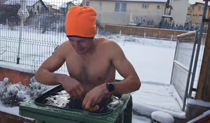 Fostul jucător al CFR Cluj, Ionuț Rada, s-a filmat într-un moment inedit. Fotbalistul a intrat la -6 grade într-un tomberon plin cu apă.