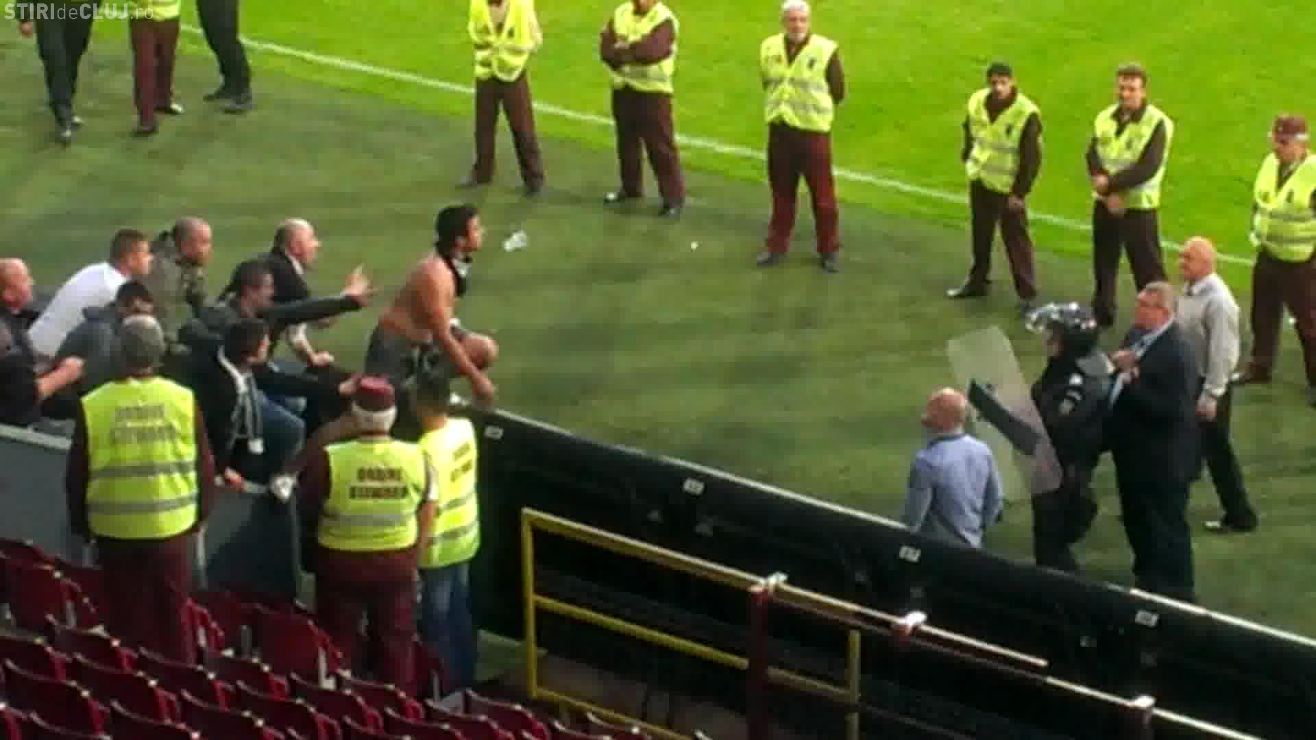 Acesta era negru de furie pentru că, la începutul meciului și pe timpul pauzelor, în boxele orientate către galeria lui U Cluj s-au pus la volum maxim imnurile CFR Cluj.