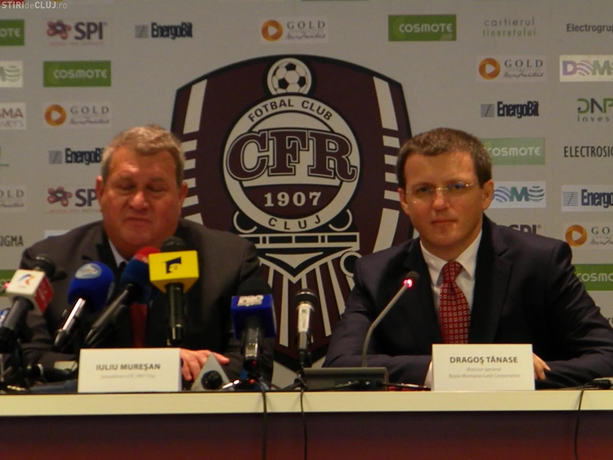 Presedintele CFR Cluj, Iulius Muresan, a visat cu ochii deschisi la semnarea contractului cu Rosia Montana Gold Corporation (RMGC) si a spus ca ar vrea ca numele echipei sa fie scris pe foita de aur.