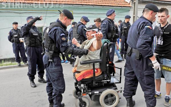 Jandarmii au fost fotografiați în timp ce verificau ”la sânge” o persoană aflata în scaunul cu rotile.