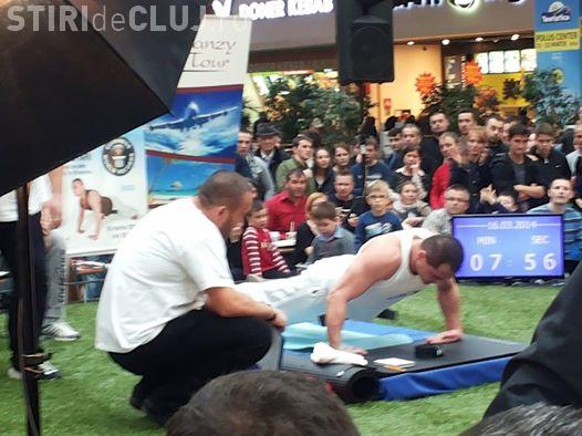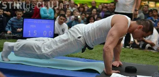 Jandarmul clujean Adrian Petre a doborât recordul mondial la flotări și a facut 631 de repetări pe dosul palmelor în 15 minute.