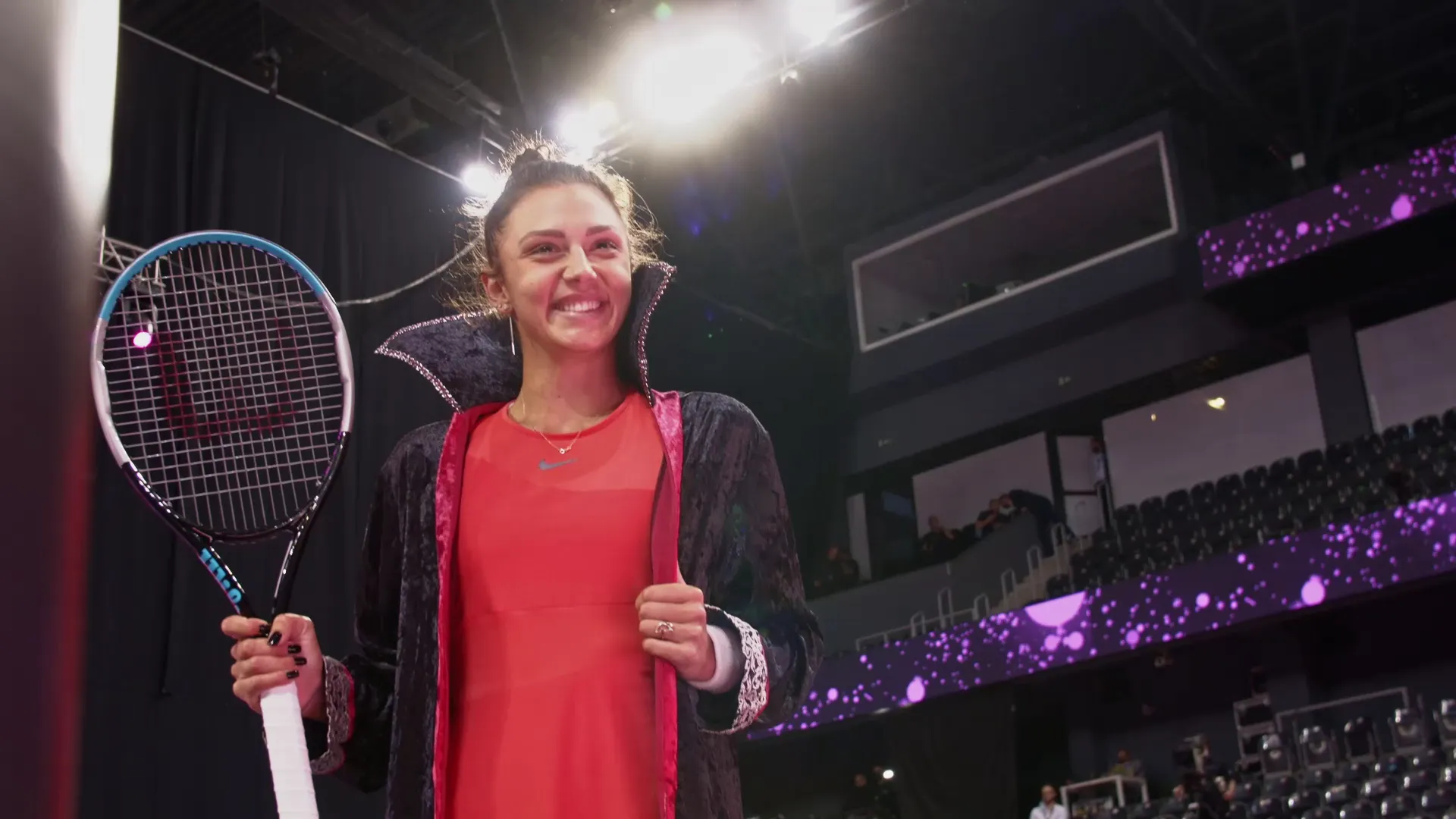 Jaqueline Cristian, una dintre cele mai frumoase sportive din circuitul WTA, a făcut senzație cu vestimentația aleasă. Cu o atitudine relaxată, vizibil bucuroasă că joacă acasă, Jaqueline Cristian a apărut pe terenul de la BT Arena cu pelerina faimosului personaj al lui Bram Stoker.