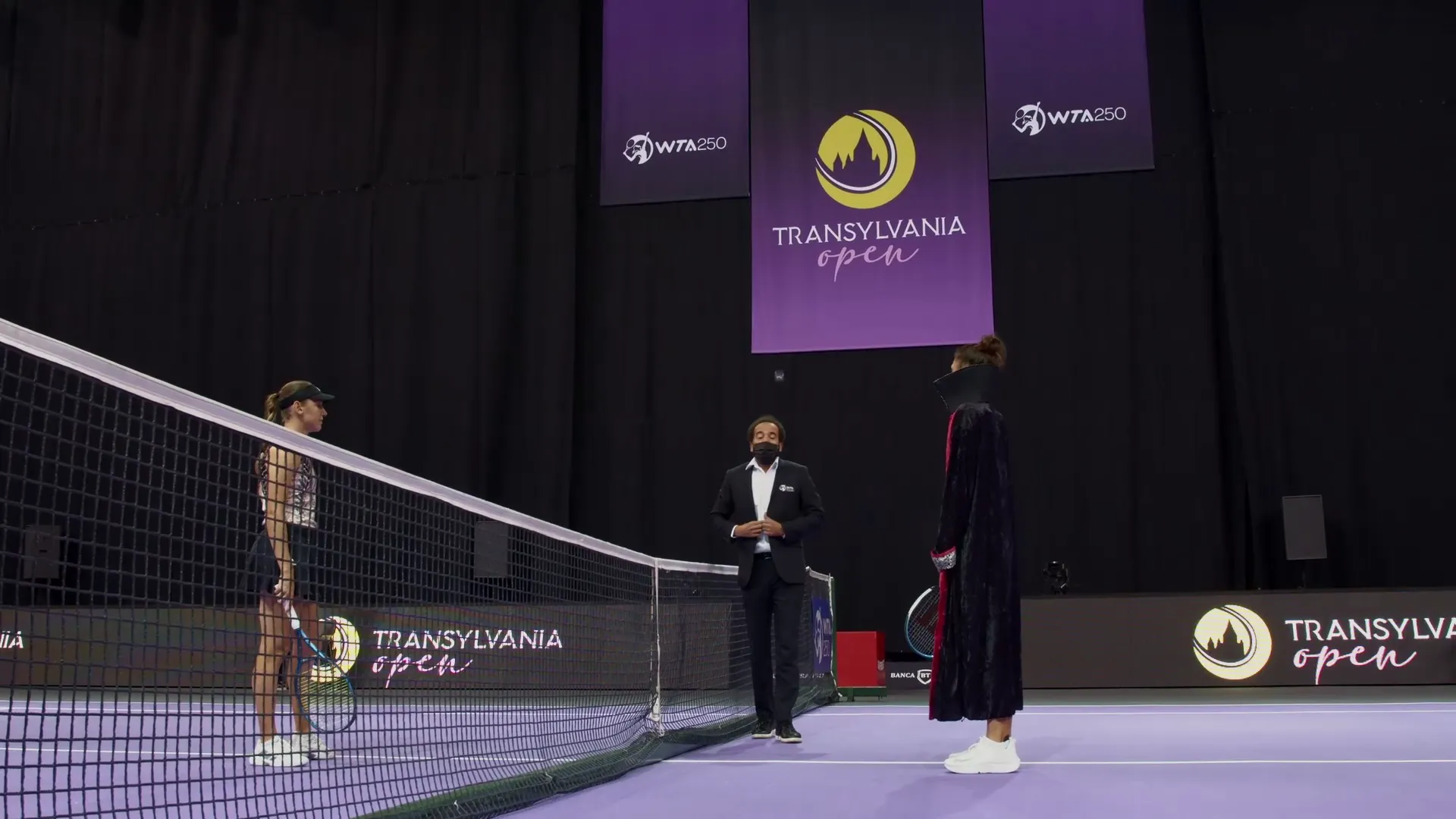 Sportiva Jaqueline Cristian a apărut la meciul de debut de la Transylvania Open cu pelerina lui Dracula.