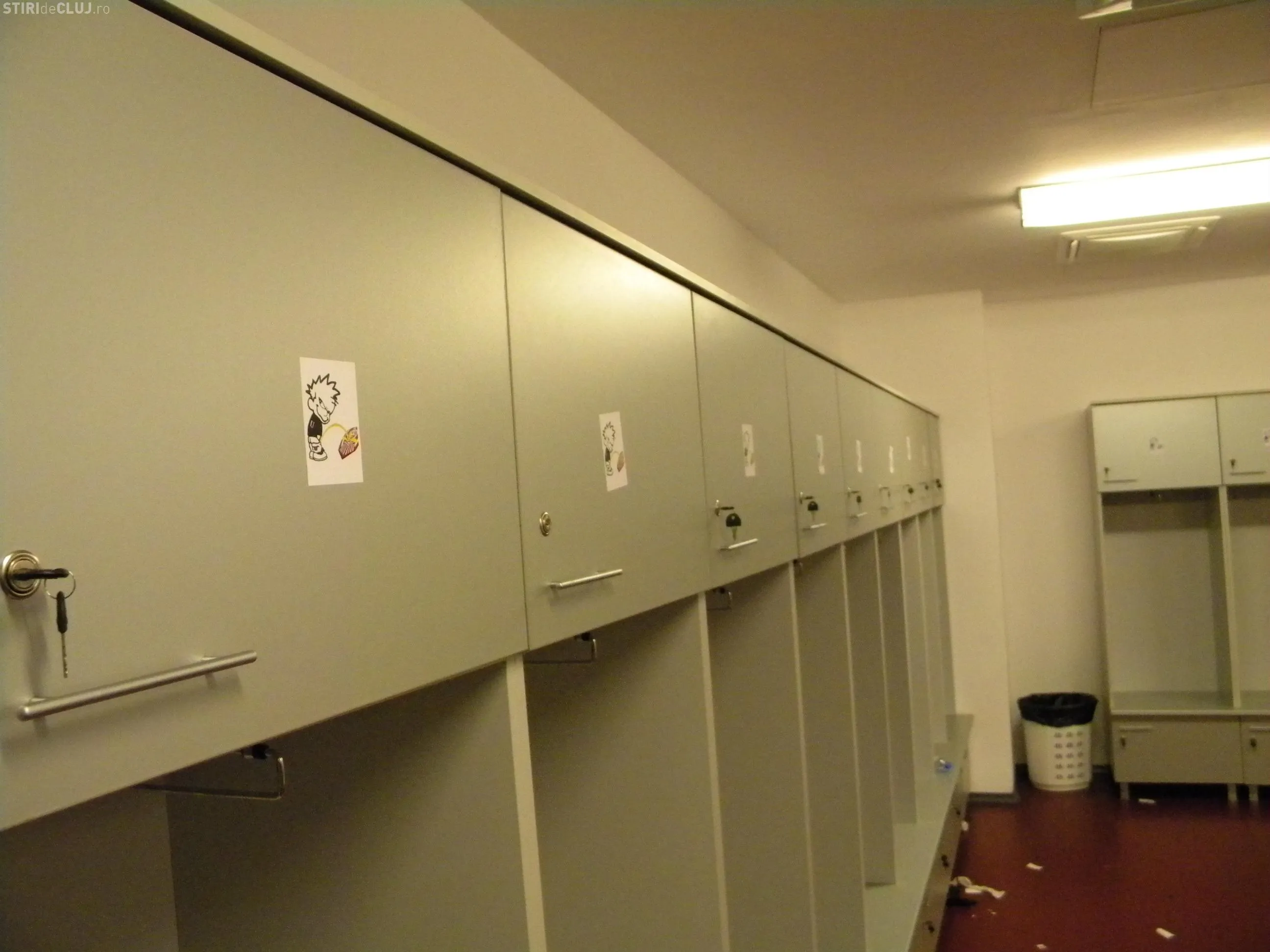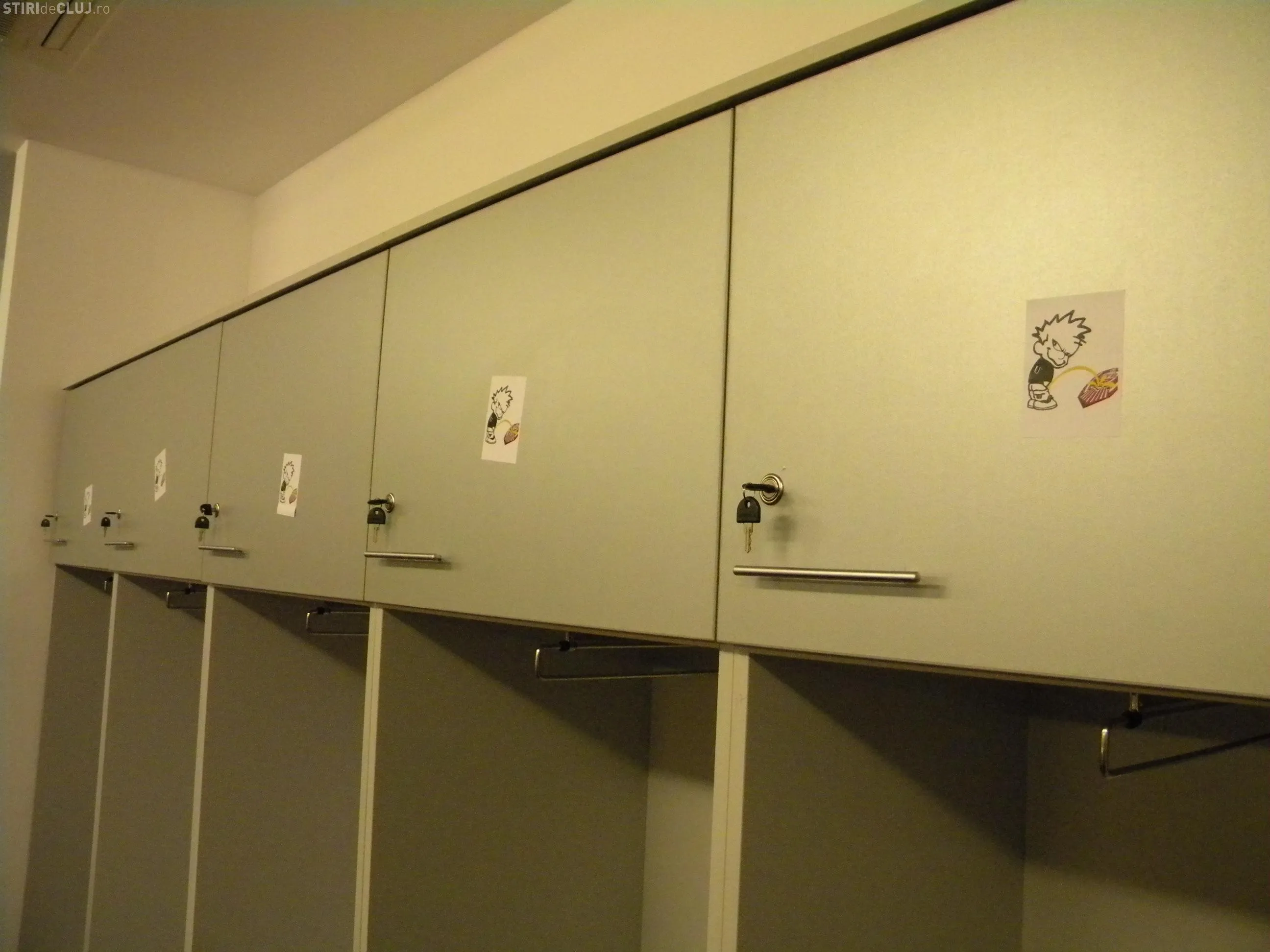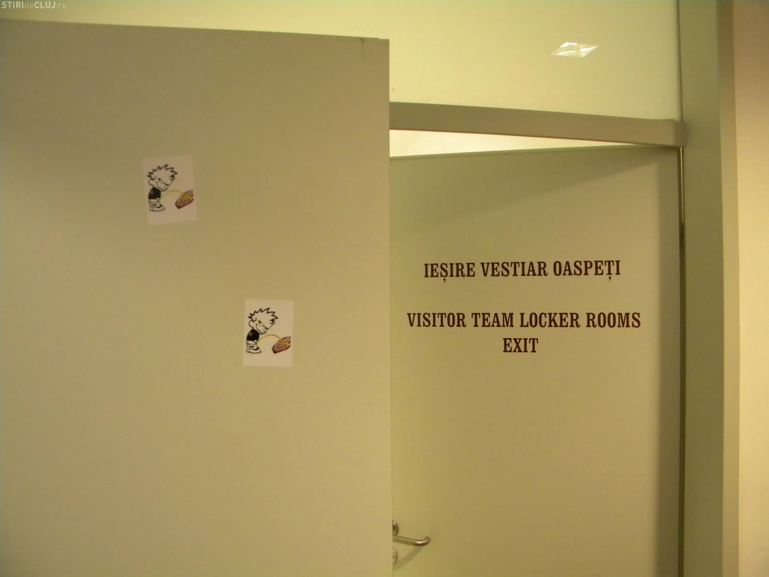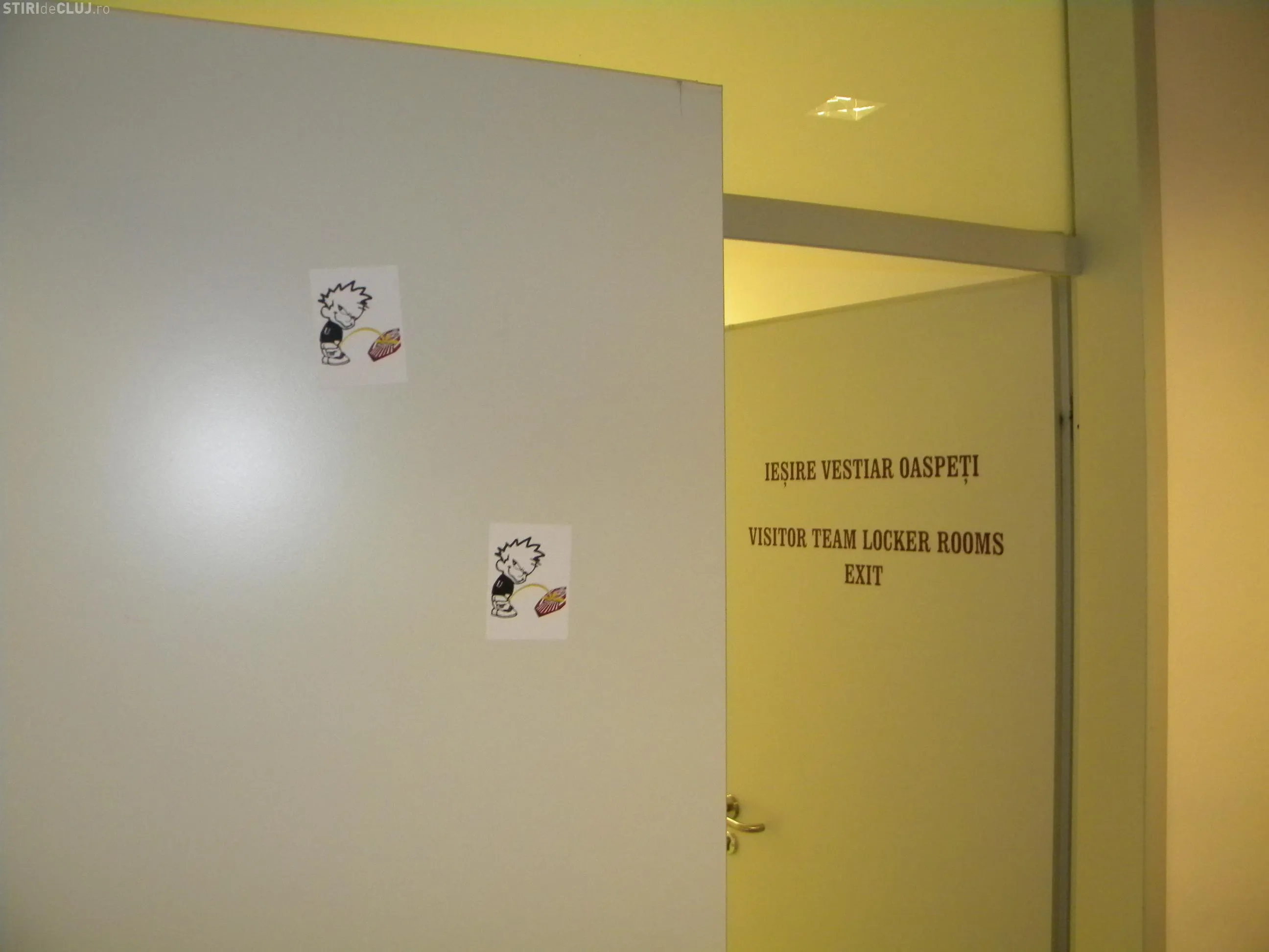 In vestiarul oaspetilor, pe care l-au folosit in timpul derby-ului cu CFR jucatorii Universitatii Cluj, au fost lipite imagini cu un om care urineaza pe sigla CFR.