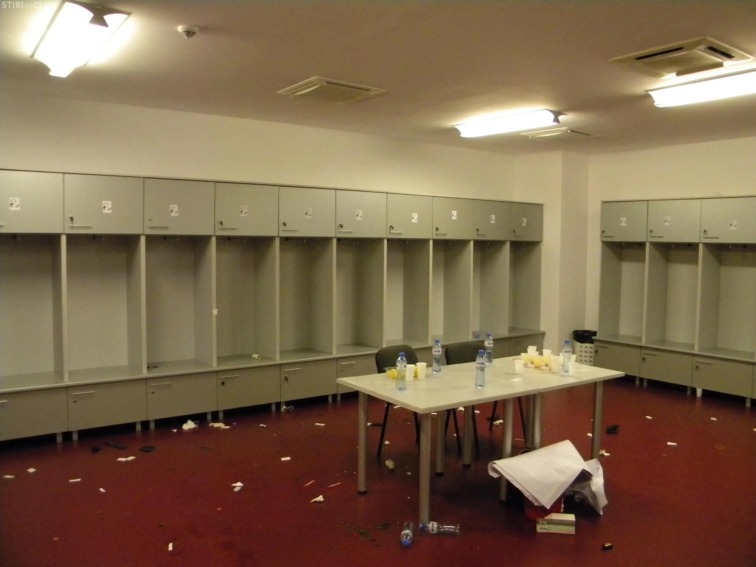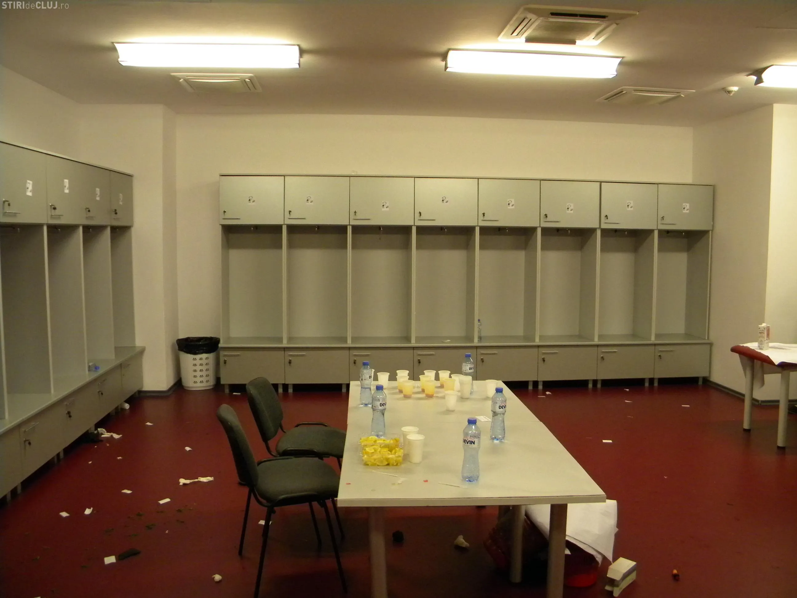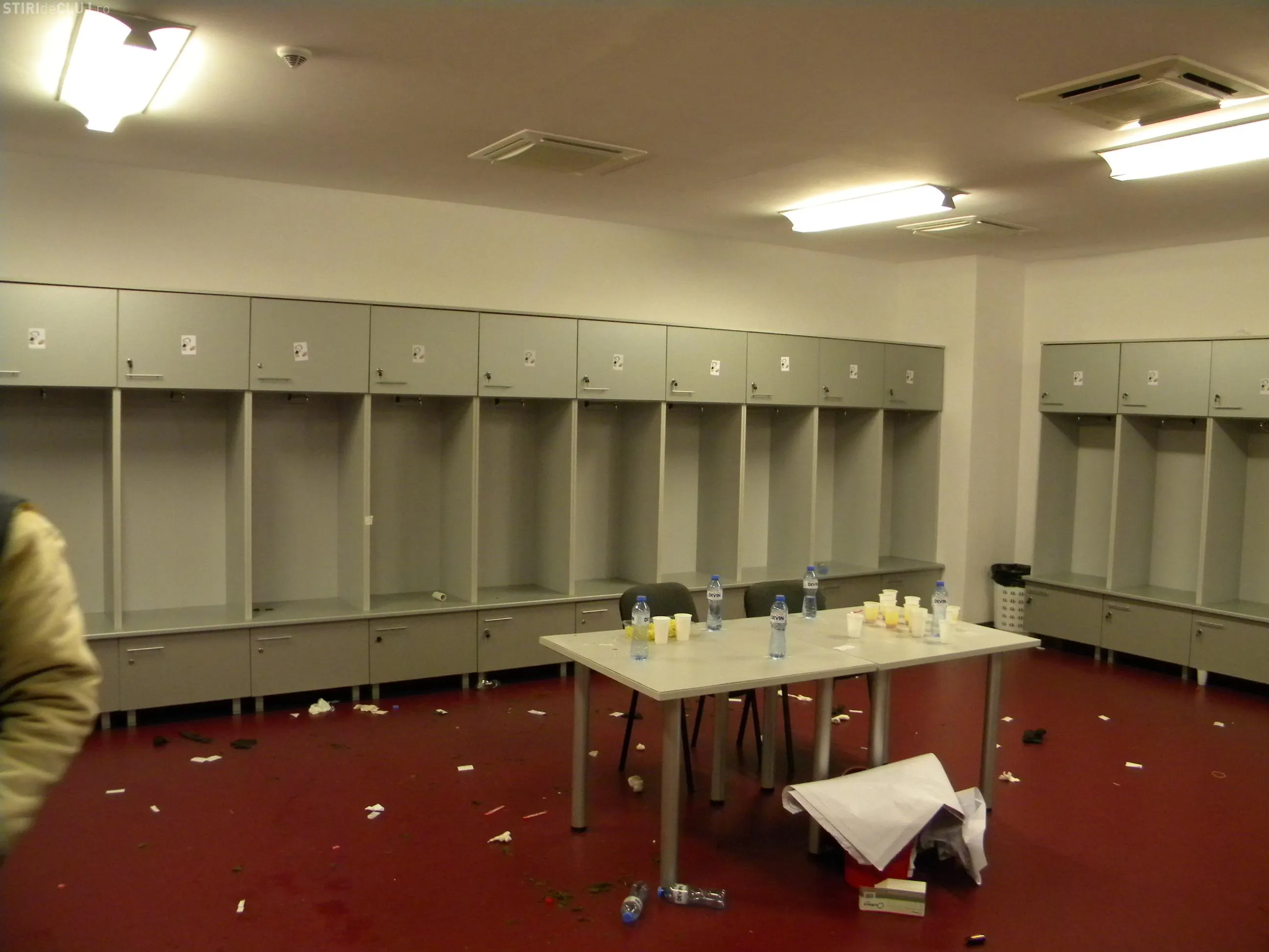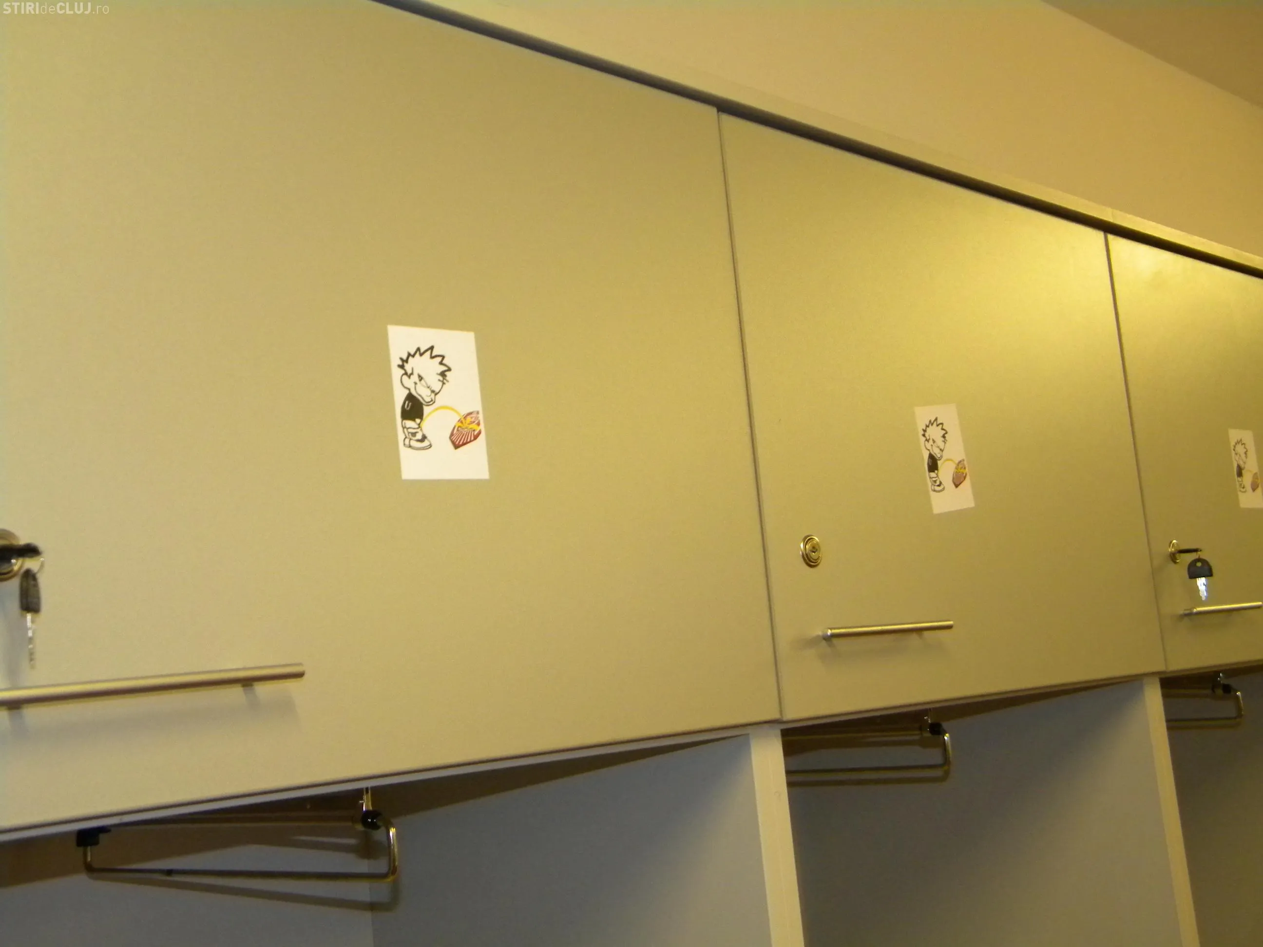 In vestiarul oaspetilor, pe care l-au folosit in timpul derby-ului cu CFR jucatorii Universitatii Cluj, au fost lipite imagini cu un om care urineaza pe sigla CFR.