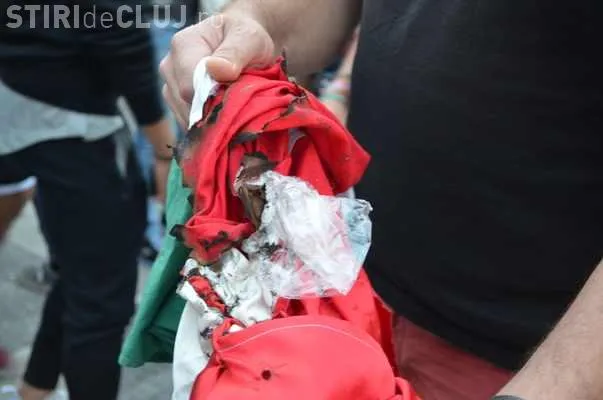 Mai mult, un grup de fani ”zeloși” au ars chiar și un steag al Ungariei în afara Sălii Polivalente.