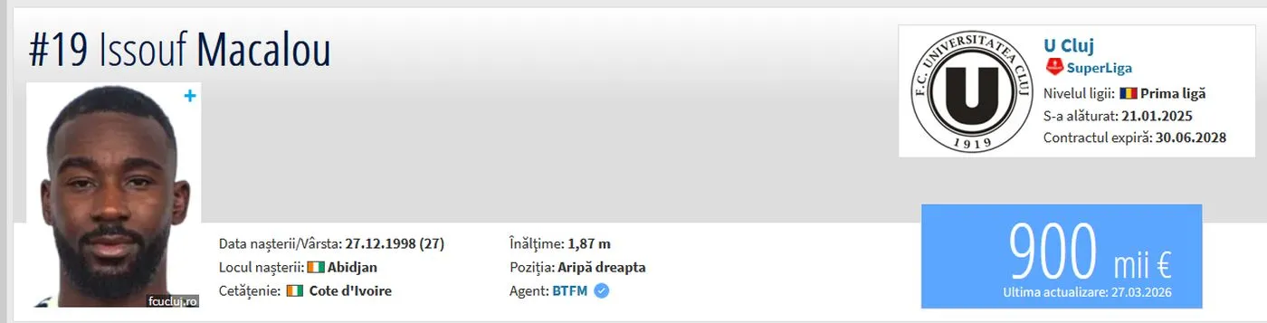 Pe lângă el, mai apar și alte variante interesante. Dino Mikanović, fundaș croat sosit la Cluj în 2025, este unul dintre stâlpii echipei și are avantajul de a fi bifat deja 13 selecții la naționala de tineret a Croației. În ofensivă, Issouf Macalou, unul dintre cei mai productivi jucători ai echipei, cu un aport important la assist-uri în acest sezon, poate intra în calcule pentru naționala Coastei de Fildeș , în timp ce Oucasse Mendy, folosit în atac și cu cifre solide în minutele jucate, reprezintă o opțiune pentru Senegal, una dintre cele mai puternice selecționate africane.