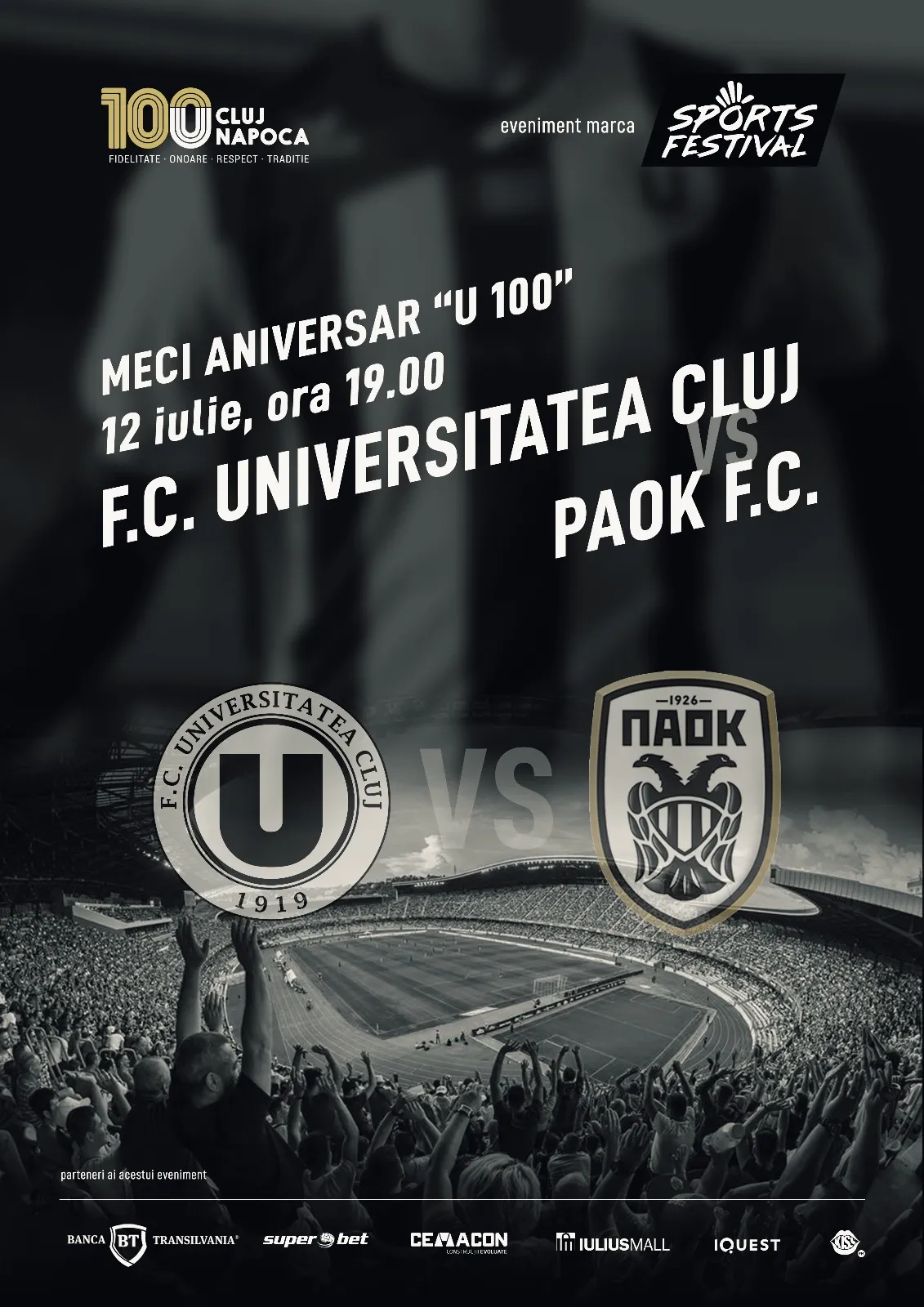„Cu ajutorul partenerilor de la Sports Festival, vom avea parte de un adevărat show pe Cluj Arena. PAOK şi Răzvan Lucescu sunt campioni în Grecia, va fi un meci spectaculos. Îi aştept pe toţi suporterii FC Universitatea Cluj la stadion, în 12 iulie, să sărbătorim 100 de ani de “U” şi să ne bucurăm împreună de fotbal. Este un moment important în viaţa echipei, pe care îl vom celebra şi prin această partidă de gală. În doar trei ani, am reuşit să construim o organizaţie puternică, aşezată pe o fundaţie solidă pe care clubul se poate dezvolta. A fost esenţial, în proiectul nostru, ca în 2019 clujenii să aibă o echipă cu care se pot mândri! Sunt bucuros că am reuşit”, a declarat Radu Constantea, preşedintele FC Universitatea Cluj.