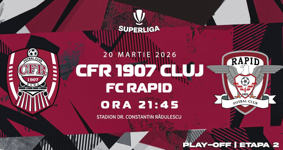 CFR Cluj și Rapid București se întâlnesc într-unul dintre cele mai așteptate meciuri din Grupa de Campionat a Superligii, în etapa a doua a play-off-ului. Partida se va disputa pe Stadionul „Dr. Constantin Rădulescu” din Cluj-Napoca, vineri, 20 martie, de la ora 21:45.