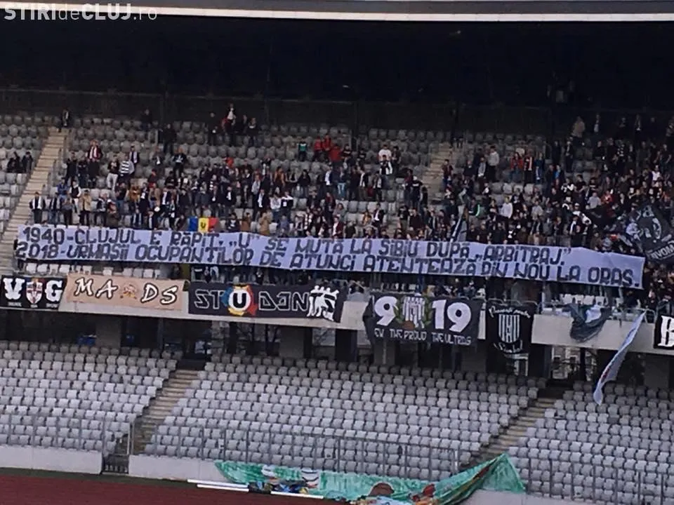 La ultima partidă a U Cluj pe Cluj Arena, fanii echipei au fost extrem de expliciți și au spus că nu vor ca CFR 2 să joace meciul de acasă cu echipa lor pe Cluj Arena. Ei au afișat un banner pe care au scris: ”1940 - Clujul e răpit, ”U” se mută la Sibiu după ”arbitraj”. 2018 - Urmașii ocupanților de atunci atentează din nou la oraș”.