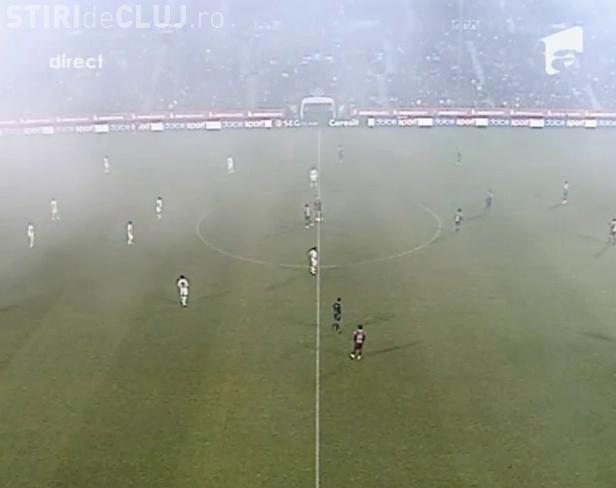 Meciul CFR Cluj - Dinamo a inceput cu cateva minute de intarzere din cauza fumului de pe stadion. Suporterii clujeni au facut o coreografie speciala cand au intrat favoritii pe teren.