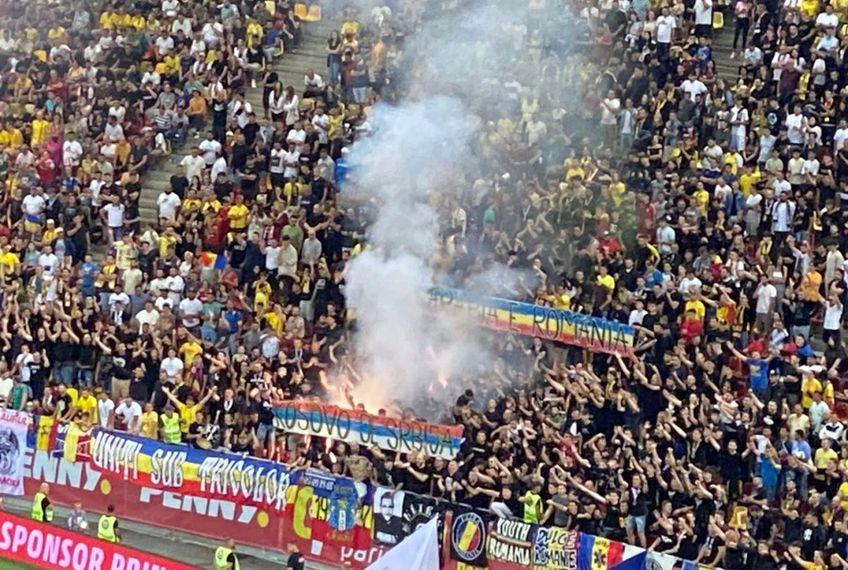Suporterii au aprins torșe și au afișat bannere cu mesajele: „Kosovo e Serbia” și ”Basarabia e România”.