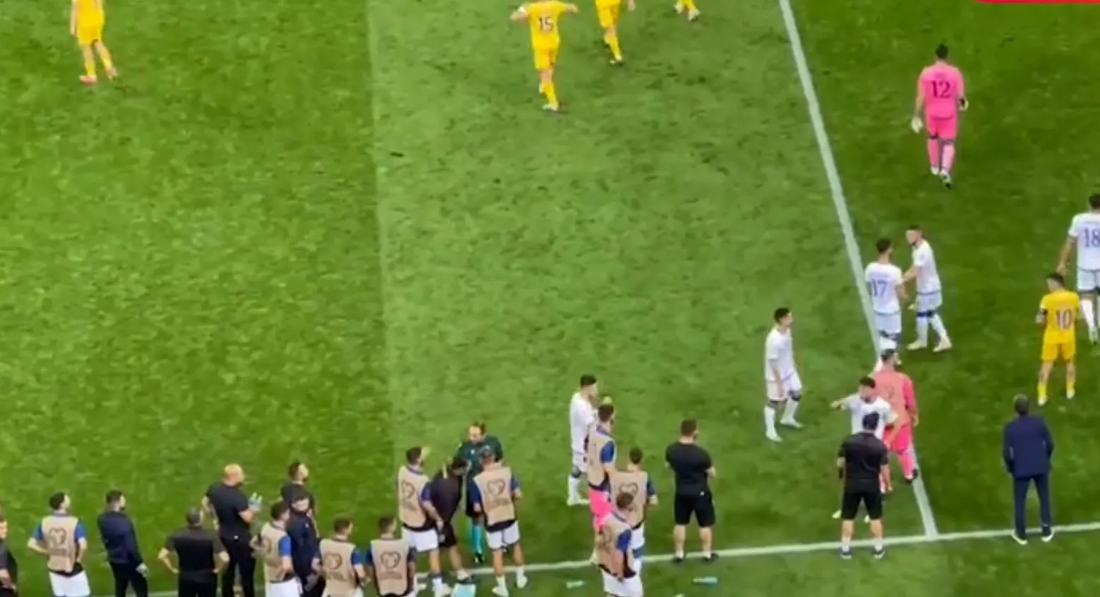 ”Uniți sub Tricolor”, o entitate-problemă care a provocat numeroase scandaluri la meciurile primei reprezentative, și-a făcut apariția la meciul tur cu Kosovo, iar incidentele n-au lipsit. Nu doar că membrii grupării au introdus în arenă unele materiale pirotehnice, dar au apelat și la o scandare care nu e pe placul forurilor internaționale: „Kosovo e Serbia”.