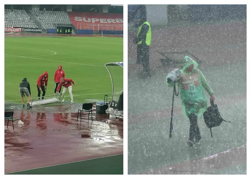Duelul dintre U Cluj și Poli Iași, din etapa cu numărul 8 din SuperLiga, s-a întrerupt, în minutul 54, din cauza furtunii. Gazdele trebuie să aducă gazonul la condiții optime în următoarea oră sau partida de pe Cluj Arena se va reprograma pentru ziua de mâine.