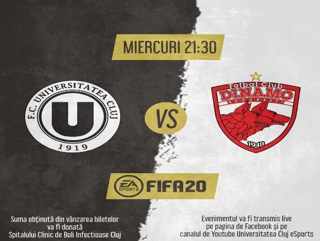 Meciul virtual dintre U Cluj și Dinamo a adunat donații de 22.900 de lei