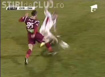 Moti l-a lovit dur pe Cristi Bud in repriza secunda a meciului CFR Cluj - Dinamo. Jucatorul bucurestean a intrat cu talpa pe tibia clujeanului, care s-a ridicat dupa cateva minute.