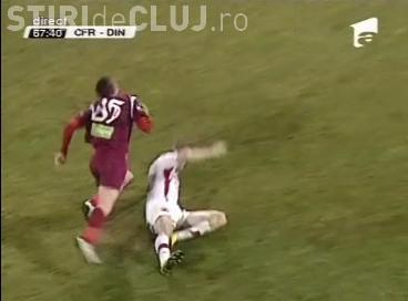 Faza nu anunta o situatie iminenta de a inscrie, dar Moti a intrat cu talpa la intimidare. Atacantul clujean a scapat ca prin minune, fara o accidentare grava, pentru ca avea piciorul in aer.