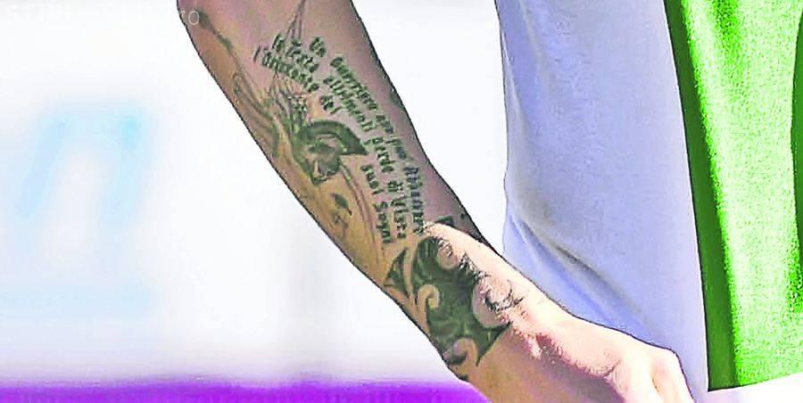 El si-a tatuat pe antebrat un coif roman si un text din cartea "razboinicul luminii", de Paulo Coelho: "Un razboinic nu trebuie sa-si plece capul pentru ca isi pierde orizontul visurilor sale”.