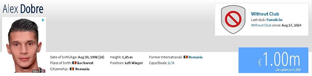 Fotbalistul în vârstă de 26 de ani a rămas liber de contract după ce s-a despărțit de cei de la Famalicao în vara acestui an. Conform platformei de specialitate Transfermarkt, internaționaționalul român este cotat în acest moment la suma de un milion de euro, dar ar putea ajunge gratis în Gruia.