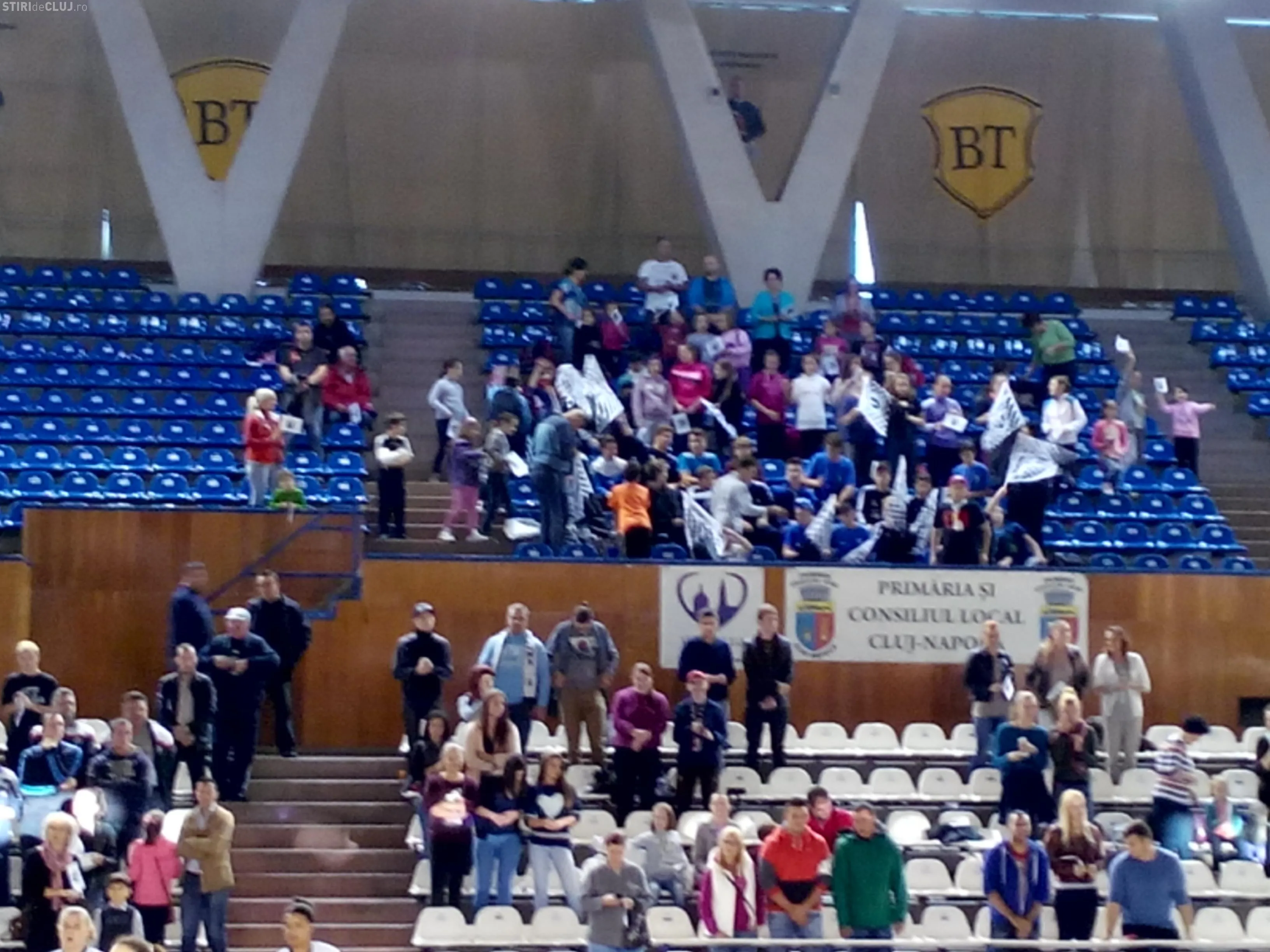 Sute de clujeni s-au strâns încă de la ora 18.00 în Sala Sporturilor, pentru a le susține pe sportive, formându-se chiar și o galerie care scandează în continuu.