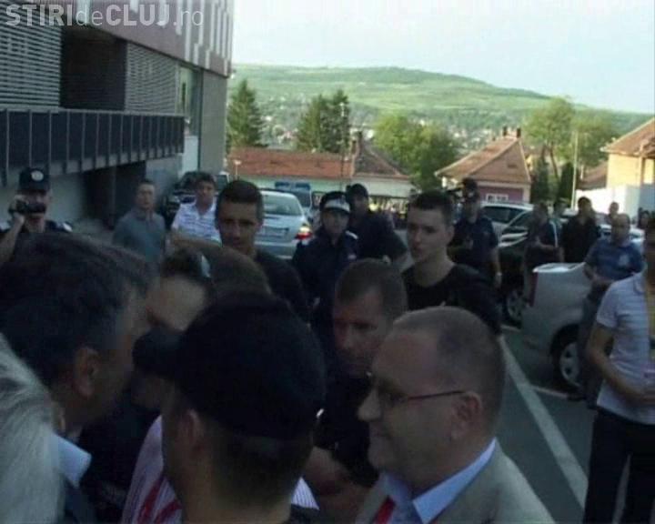 Valeriu Argaseala si Gigi Becali i-au explicat unui oficial al CFR Cluj ca Cosmin Olaroiu ar fi vrut sa mearga la autocar, in zona portii de acces auto, unde il astepta fiul lui. "A vrut sa il ia pe fiul sau, dar cei de la paza nu l-au lasat. De ce incita? E un vagabond, domnule!", a mai subliniat Becali.