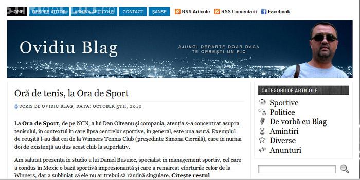 "Am inceput sa scriu punand un pariu cu redactorul sef adjunct de la un cotidian clujean. Cristian Bara il cheama. Pe redactor. I-am spus că pot s-o fac mai bine decat ai lui de la sport, el a tinut pariul, iar eu m-am ales cu un job. Acum rad cand citesc textele acelea, erau cam subtirele", povesteste Ovidiu Blag.