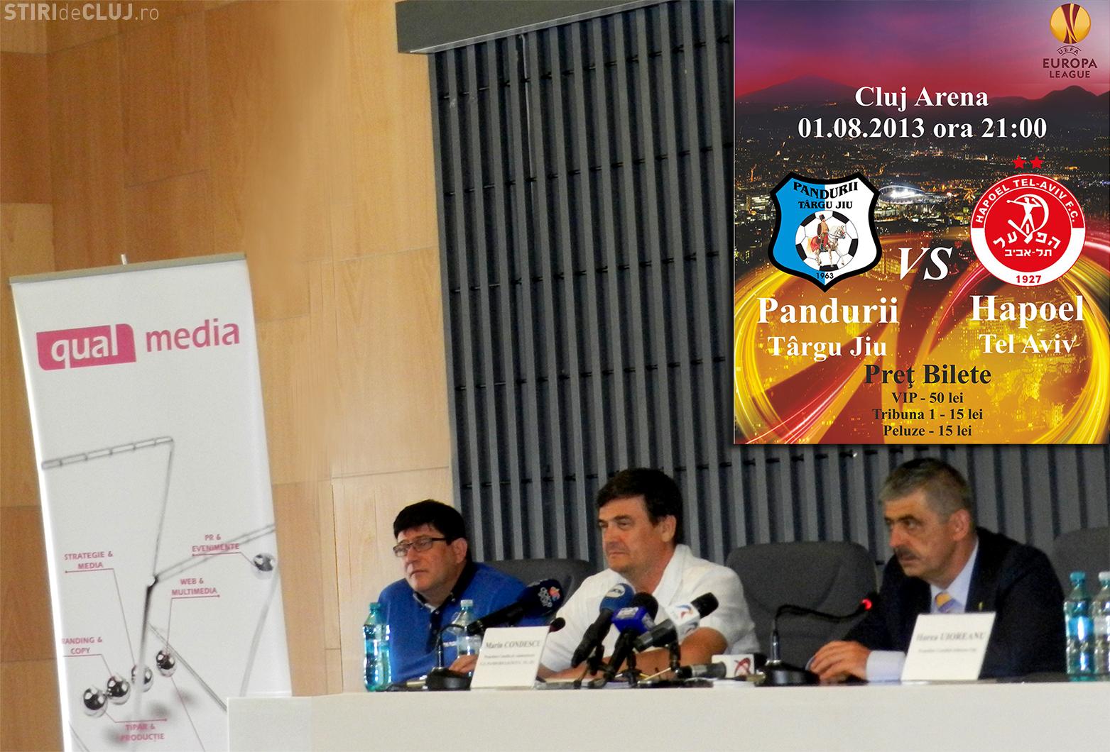 Pandurii Târgu Jiu- Hapoel Tel Aviv joacă joi pe Cluj Arena, în Europa League, de la ora 21.00, din turul 3 preliminar al competiției.