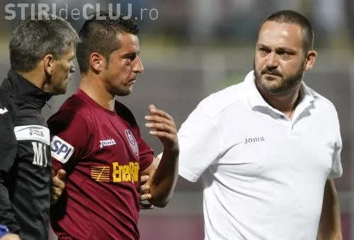 Fundasul dreapta al echipei CFR Cluj, Cristian Panin, s-a ales cu un ochi invinetit in urma unei ciocniri cu portarul Beto.