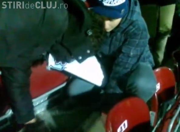 ”Pe Stadionul echipei CFR Cluj, ”Dr. Constantin Radulescu” este interzis consumul de seminte. Acesti tineri nu au respectat acest lucru si pe deasupra au facut si mizerie cu cojile in jurul lor. In pauza, un steward i-a pus sa faca curatenie. Oare chiar asa de greu era sa respecte niste reguli?”, a scris cel care a filmat scena și a postat imaginile pe YouTube.