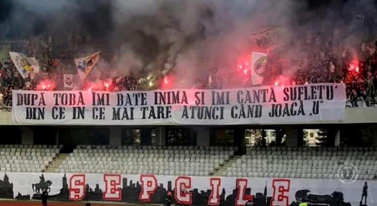 „Hai mă fiți cuminți și acceptați, U-iștii și când au fost foarte puțini la stadion, au fost mai numeroși decât voi. Explicabil, voi nu existați. Vorba aia: "Nu vă comparați cu noi, ne-am p|$at mereu pe voi!" Nu o dați în lambada despre rezultate și realizări! În tribune nu există termen de comparație, voi nu existați! Când venim în Gruia luăm biletele la liber, le achiziționăm în ciuda tuturor șicanelor și piedicilor și sunteți oaspeți la voi pe schelă. Când veniți la noi, plângeți după mai multe sectoare alocate, nu vă oprește nimeni să cumpărați bilete oriunde pe stadion, curaj! Mobilizarea!”, au concluzionat cei de la peluză.
