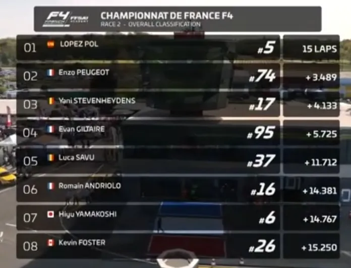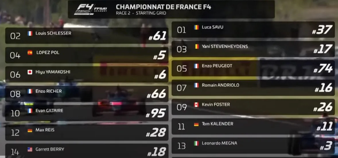 Luca Savu a pornit din Pole Position cursa de Formula 4 de pe circuitul NOGARO din Campionatul Franței.