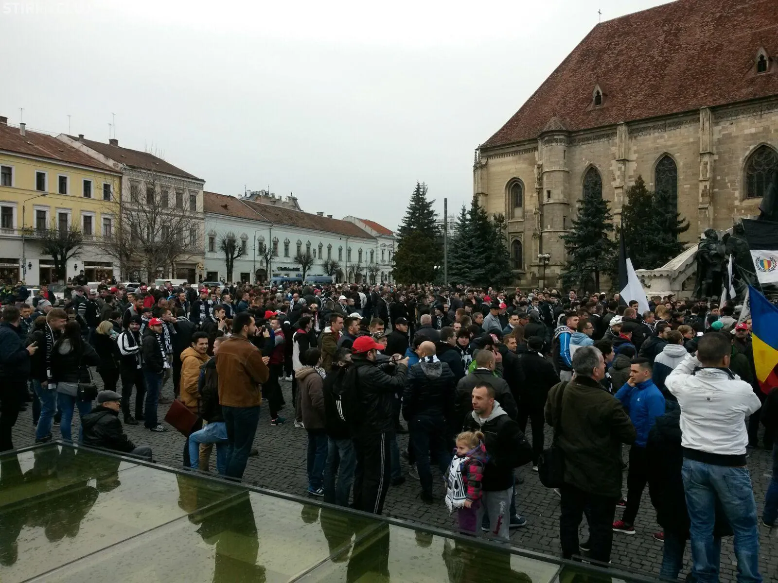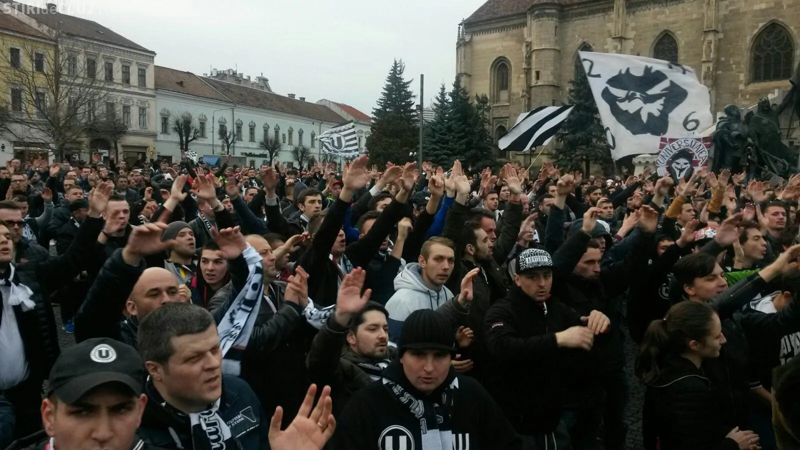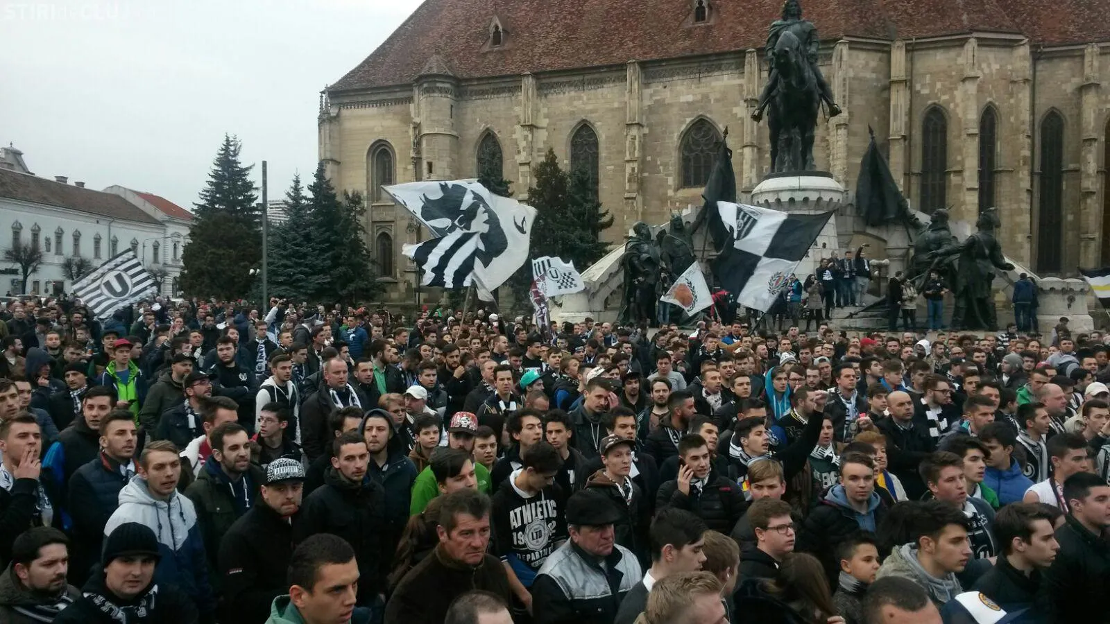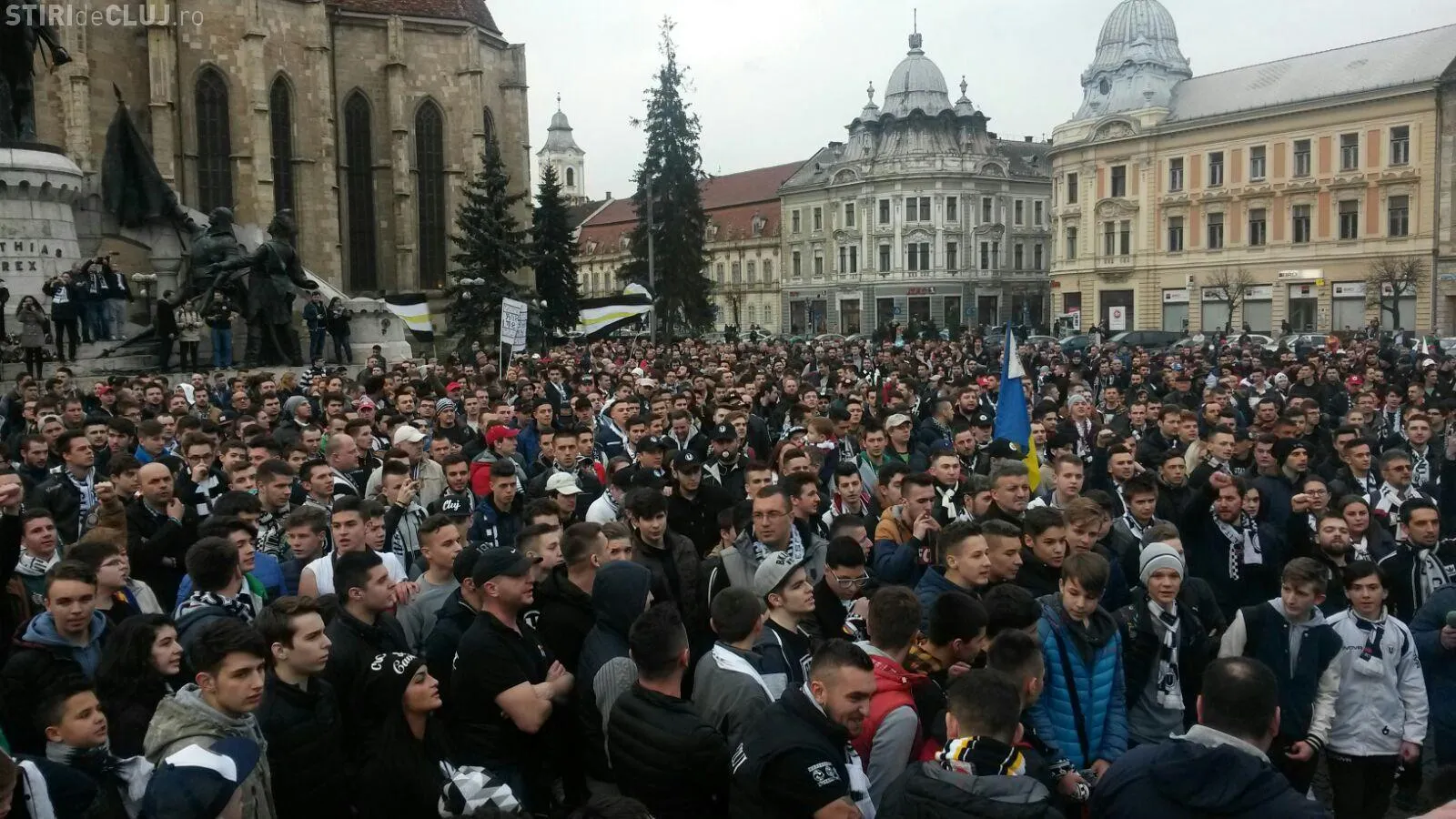 Peste 5.000 de suporteri ai Universității Cluj au ieșit în stradă, în Piața Unirii, joi după-amiaza, pentru a-și susține echipa de suflet, care se confruntă cu grave probleme financiare.