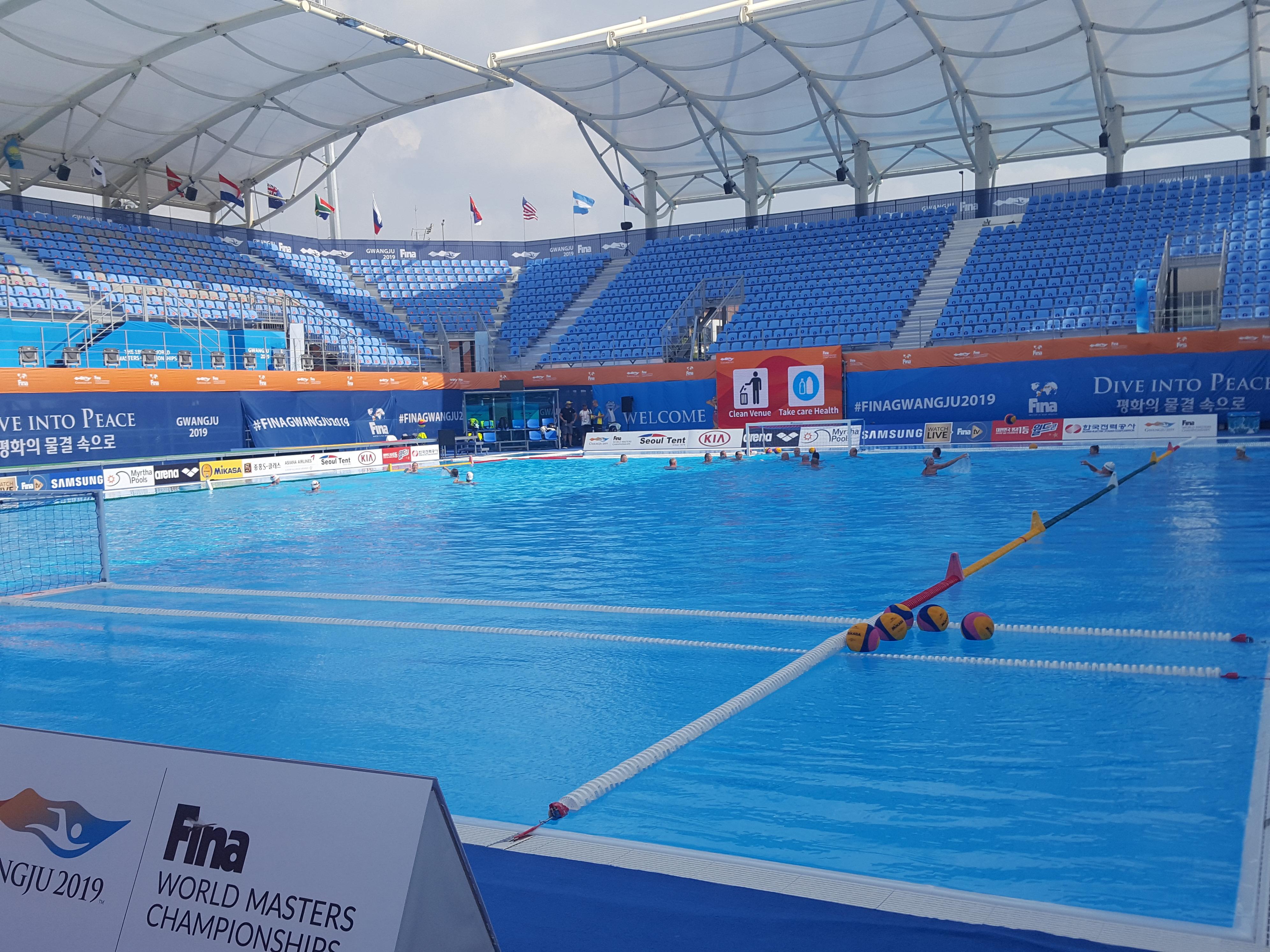 Locul de desfasurare al meciurilor au fost 2 bazine (unul dintre ele fiind construit peste un teren de fotbal – doar pentu acest eveniment – inclusive campionatul mondial care s-a desfasurat cu 2 saptamani inainte de CM Masters). Meciurile au fost televizate si transmise live-streaming pentru iubitorii sportului, fiind urmarite de un numar impresionant de privitori.