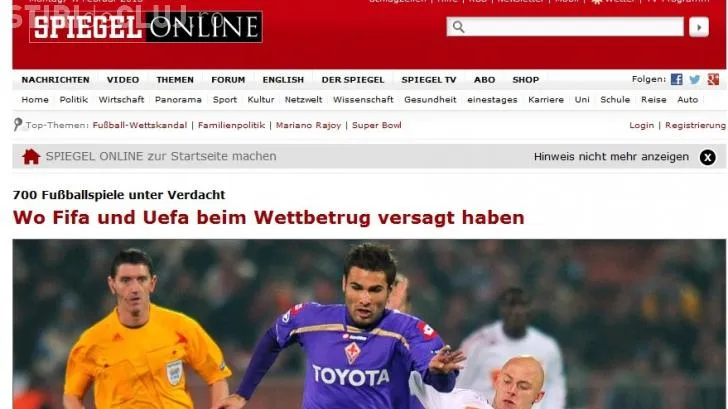 Rețeaua la care face referire Der Spiegel ar fi trucat 380 de meciuri de fotbal, chiar și din Liga Campionilor şi din preliminariile Cupei Mondiale. Aceasta a fost desființată, conform Oficiului european de poliţie Europol, citat de AFP.