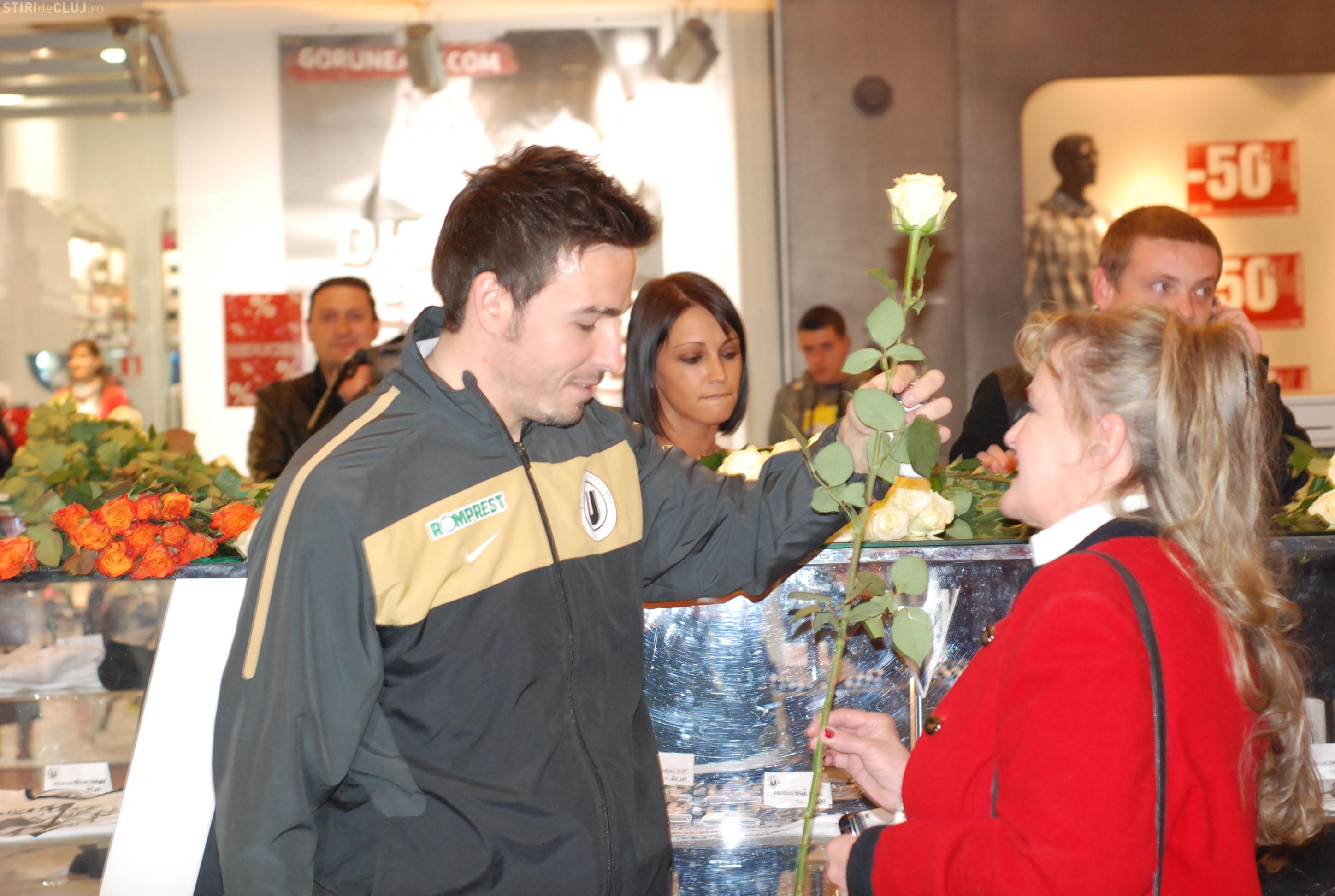 Jucatorii echipei Universitatea Cluj au impartit flori femeilor in Iulius Mall. Reprezentantele sexului frumos au fost impresionate de "printul" Adrian Cristea, de la care au cerut si autografe.