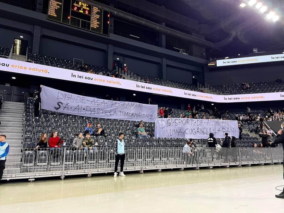 ”Digi Sport de ani de zile numai cu gândul la bani!”, au scris suporterii U Cluj pe un banner afișat după victoria din Eurocup.