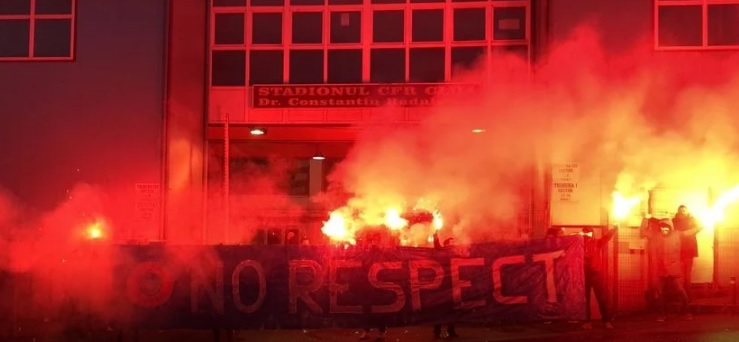 Ultrașii CFR Cluj au scris ”NO RESPECT”, ironizând UEFA care folosește în 2008 mesajul ”RESPECT”, pentru a combate discriminările de orice fel. Pe banner apare și o siglă modificată a forului european pe care scrie ”UEFA MAFIA”, screi Gsp.ro.