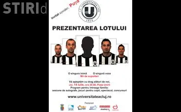Universitatea Cluj isi va prezenta joi, 14 iulie, de la ora 20.00, in Piata Unirii, lotul de jucatori pentru sezonul 2011-2012.