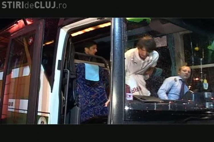 Rapidistii au fost asteptati la Aeroportul International Cluj de un autocar inchiriat, la fel ca si Steaua cand a venit la Cluj pentru a juca contra U Cluj. George Copos a facut economie si nu a mai trimis autocarul echipei din Bucuresti, preferand sa inchirieze unul mai ieftin.