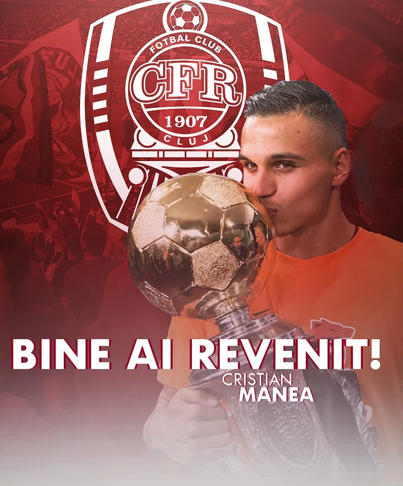 Astfel, vineri seară, CFR Cluj a anunțat revenirea lui Cristian Manea, care a mai evoluat două sezoane în Gruia.