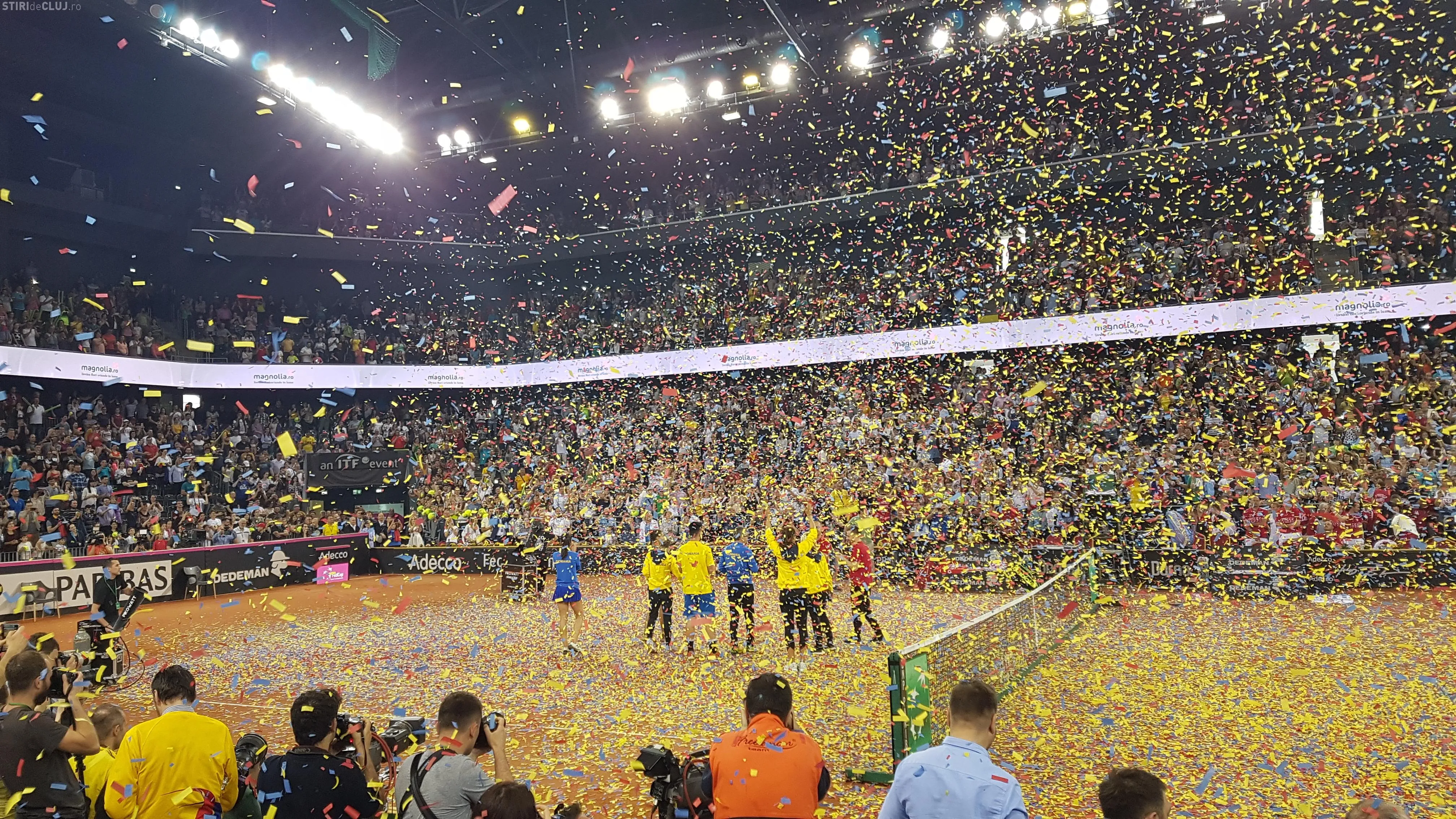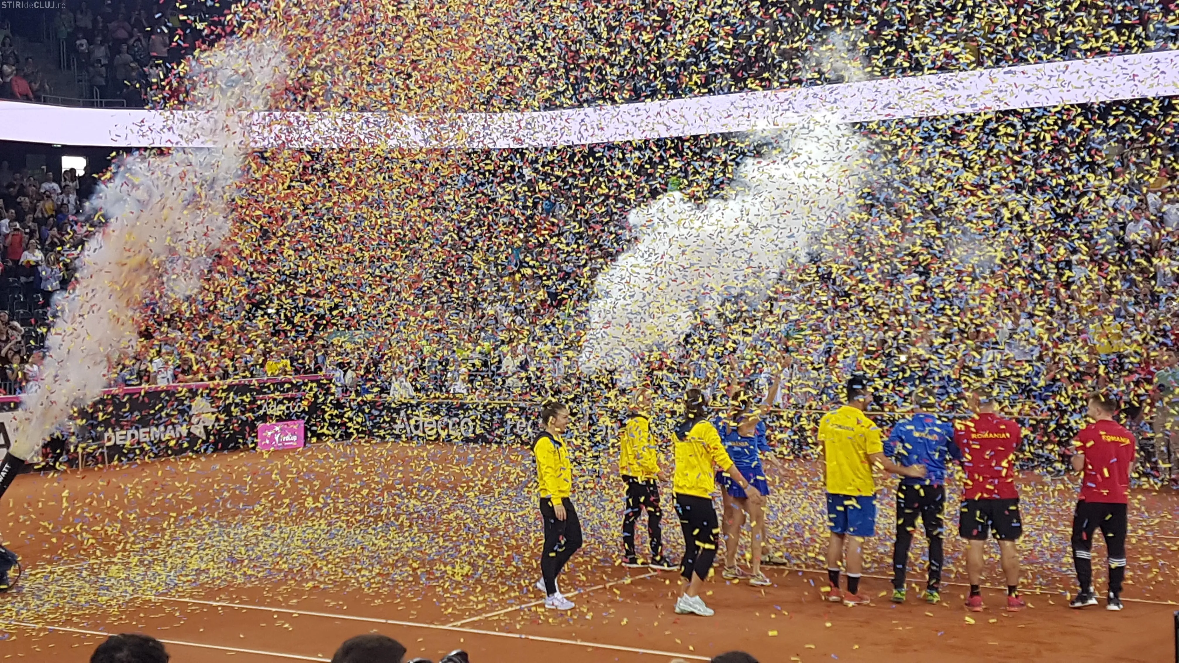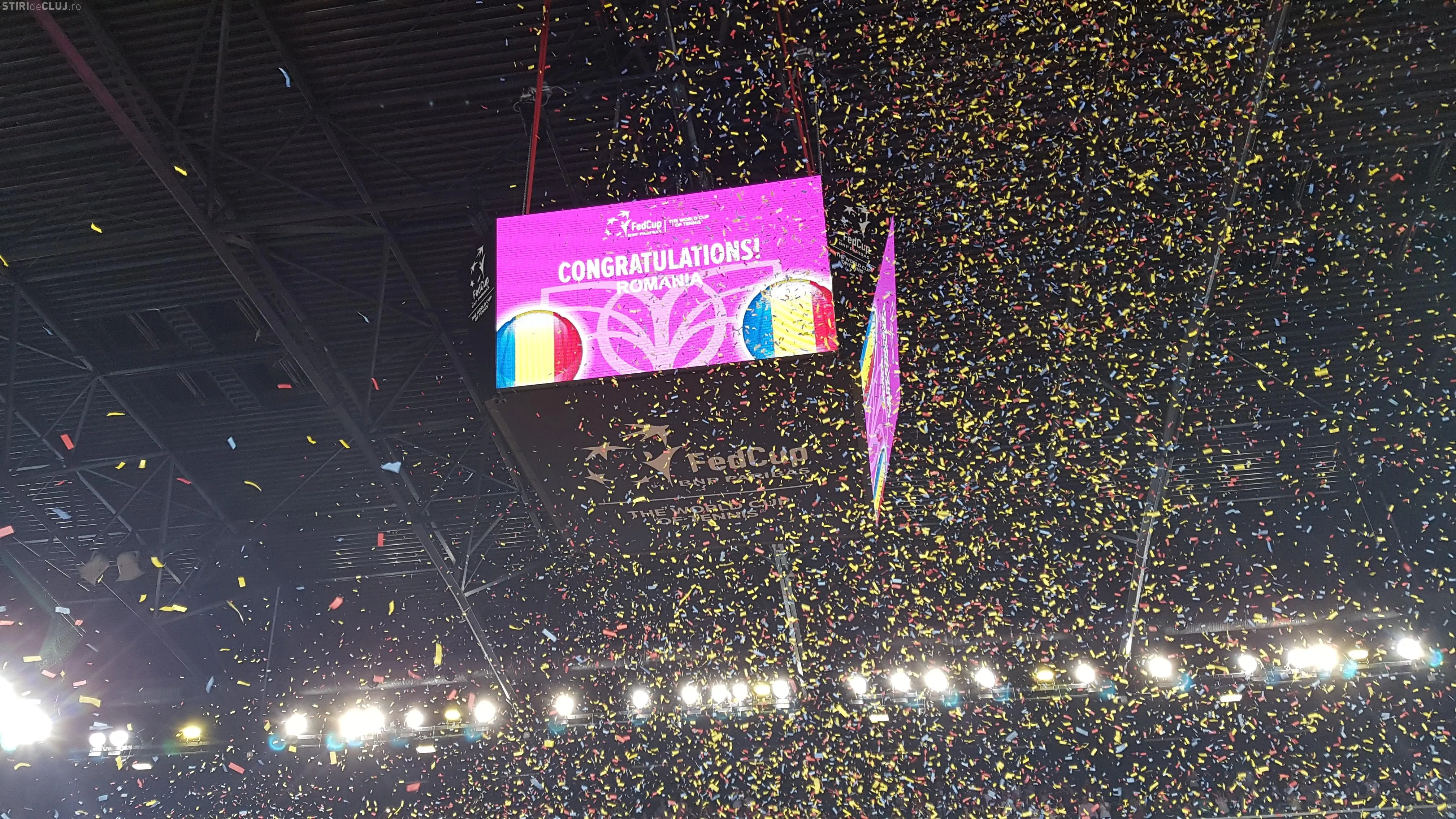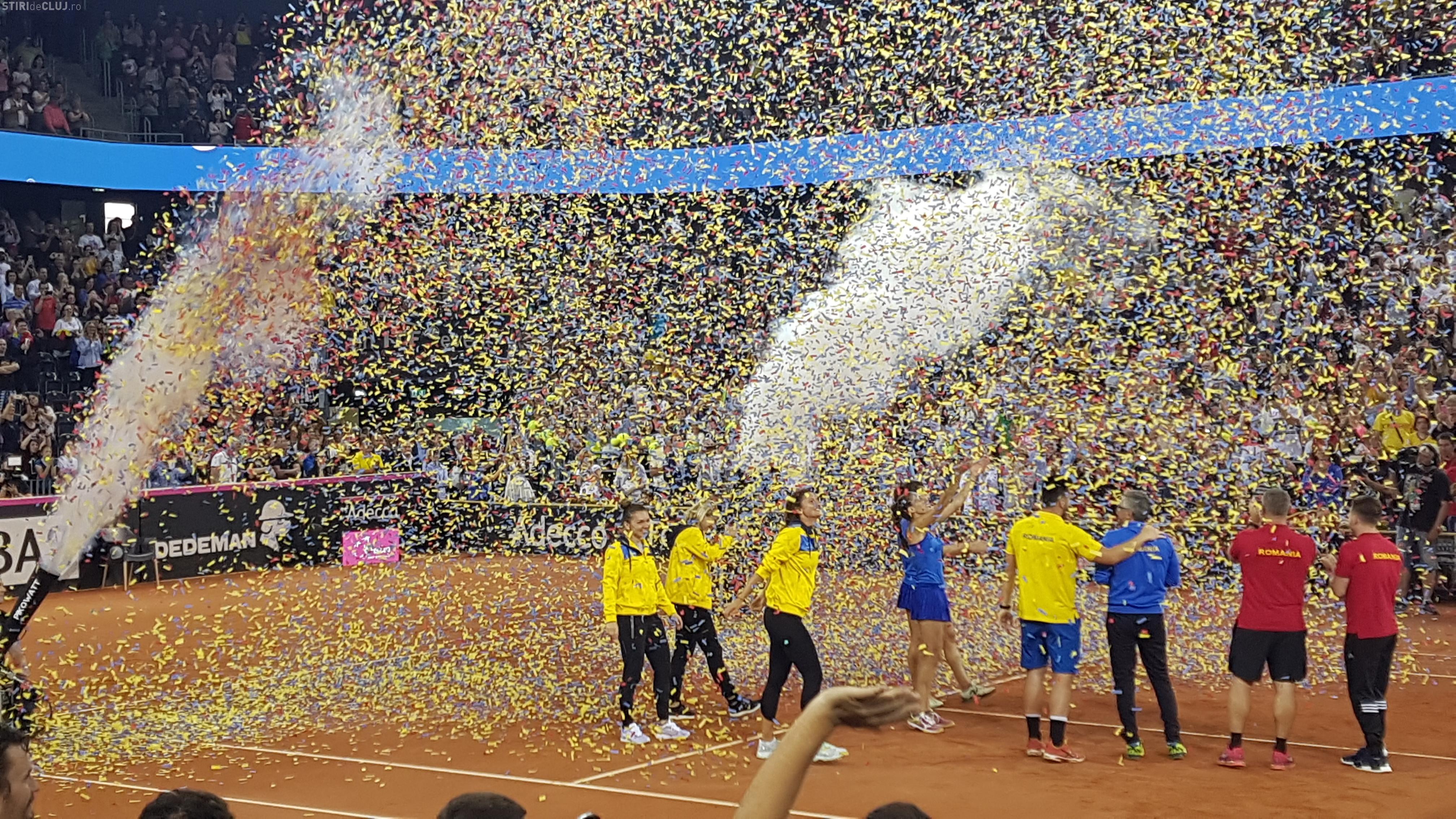 România a câștigat duelul cu Elveția, din Fed Cupă, scor general 3-1. La finalul meciurilor s-a cântat melodia ”Noi suntem români”, fetele au salutat publicul și au explodat tunurile.