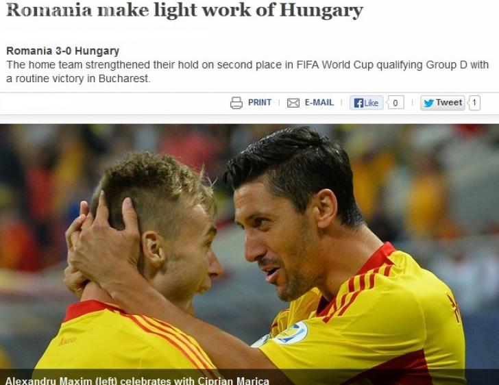 "Romanii au obtinut o victorie de rutina la Bucuresti si au urcat pe locul doi in clasamentul grupei. O victorie lejera pe tricolori. Scorul putea fi chiar mai mare, dar Stancu si Popa au ratat ocazii mari in repriza secunda", scrie pe site-ul oficial UEFA, în anunțul titrat "Romania a maturat cu Ungaria".