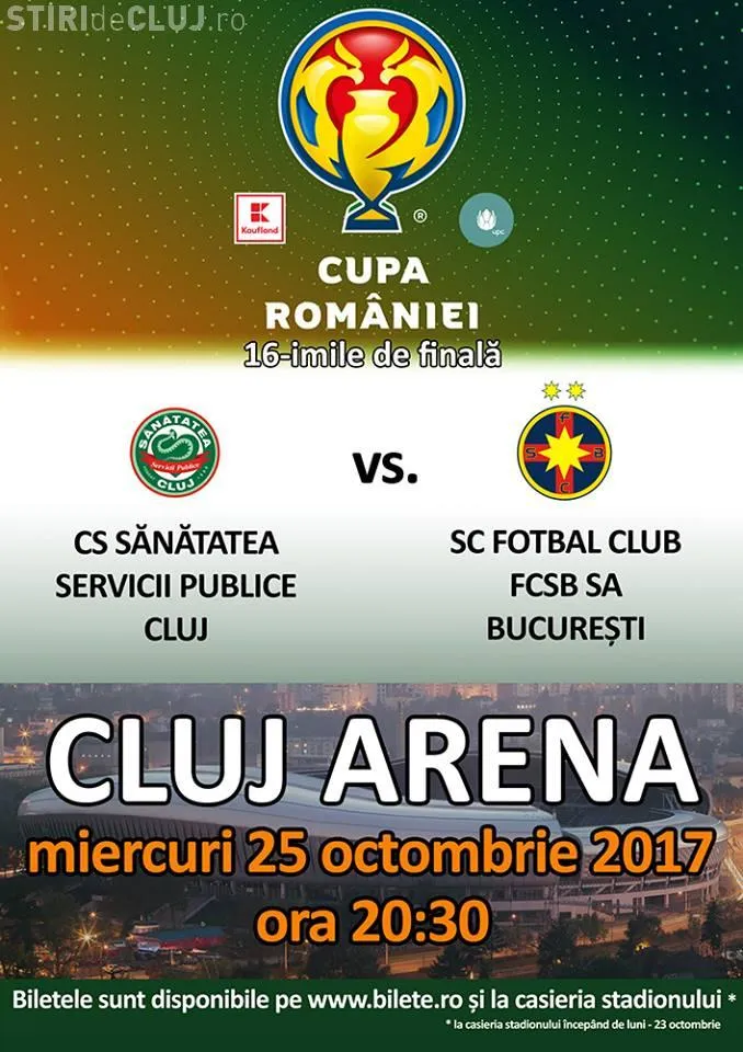 Sănătatea Cluj va juca cu FCSB în 16 - imile pe Cluj Arena.