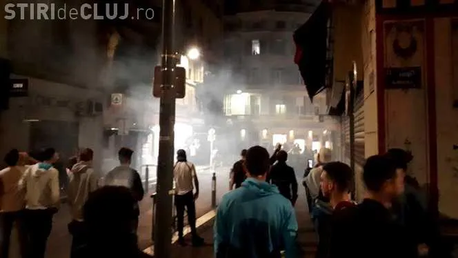 Suporterii francezilor s-au bătut chiar și între ei. Un huligan a fost filmat în timp ce arunca cu un scaun de metal, ulterior a fost preluat de polițiști.