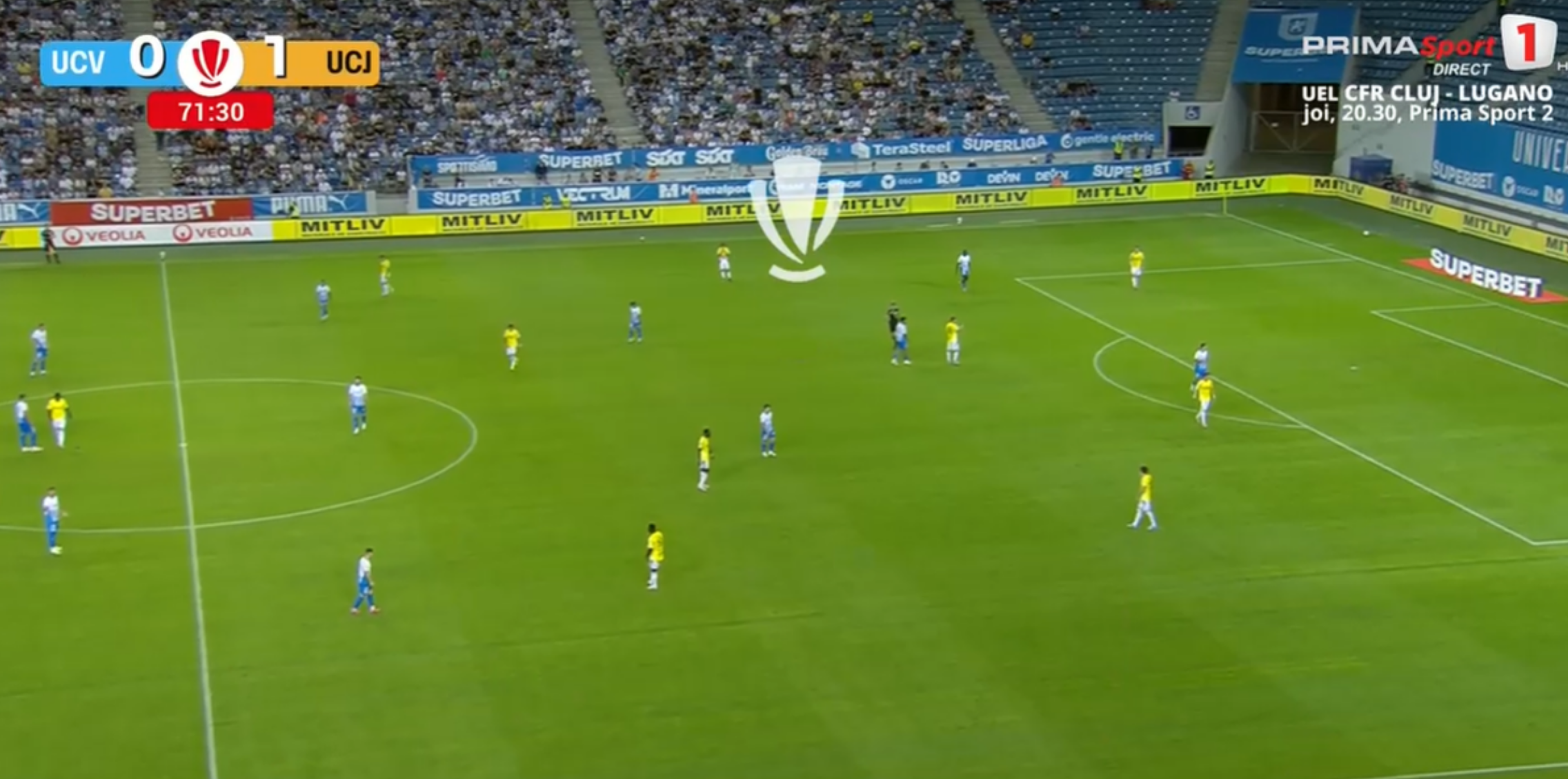 Momente incredibile în Craiova - U Cluj! Echipa gazdă a jucat cu 12 jucători pe teren pentru câteva secunde