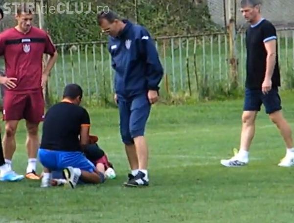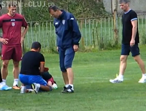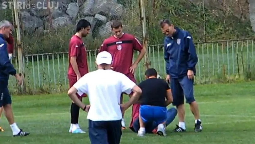 Echipa se antrena pe baza de lângă Iulius Mall Cluj, iar la o fază de atac Sepsi a intrat tare la portar, acesta căzând secerat la pământ.