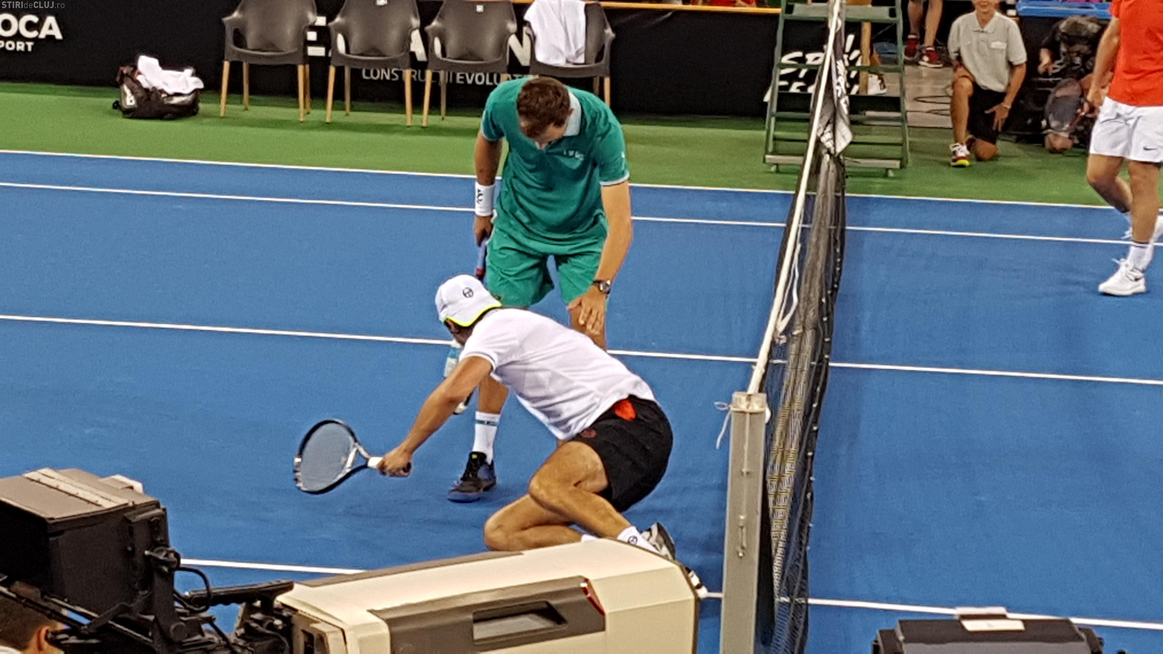 Publicul a gustat monetul, mai ales că Goran Ivanisevic a căzut lat pe teren. După câteva momente în care sportivii au muncit la fileu, meciul a fost reluat.